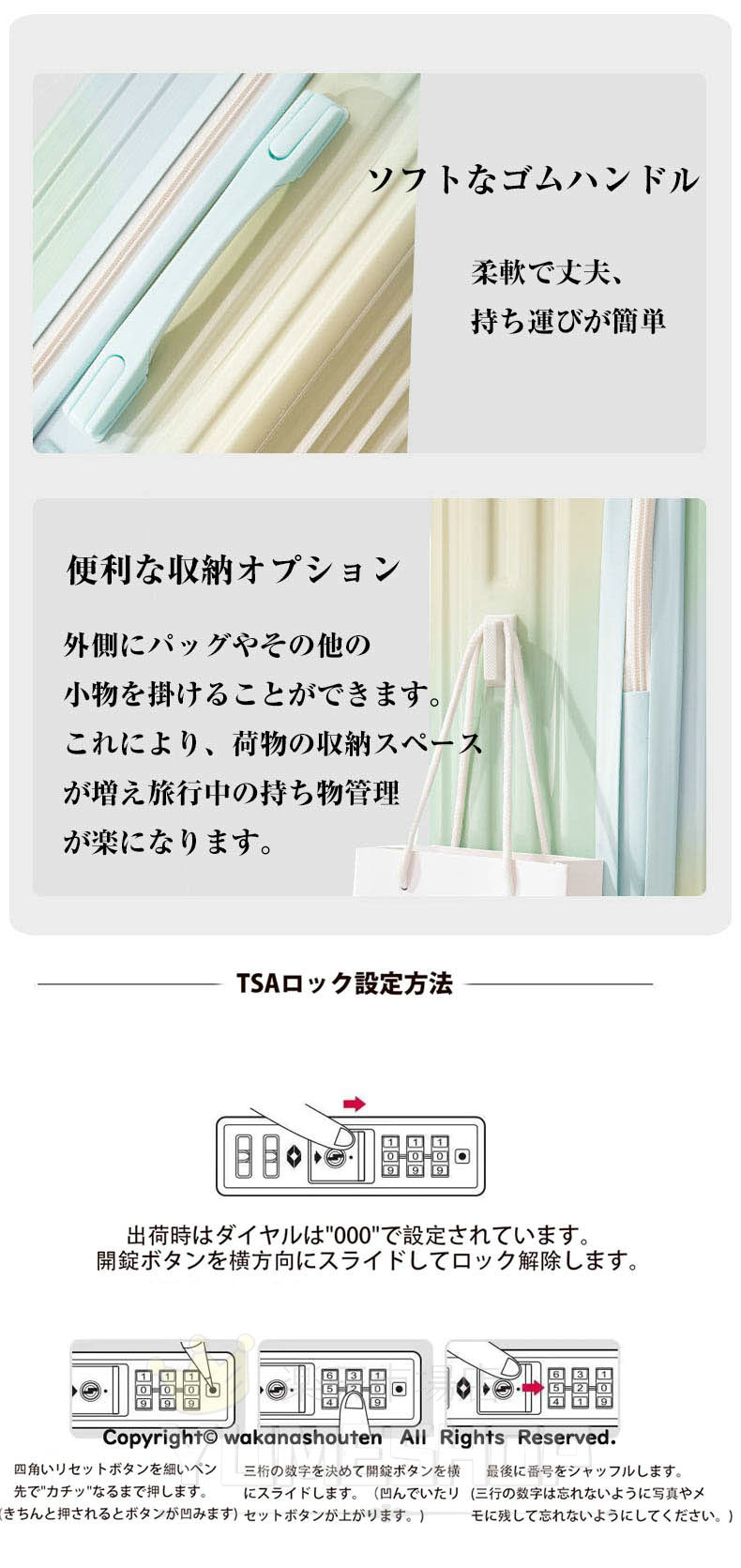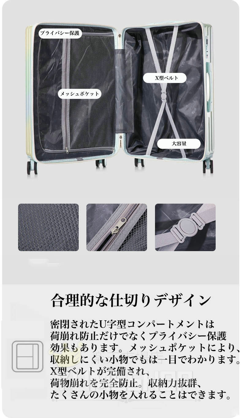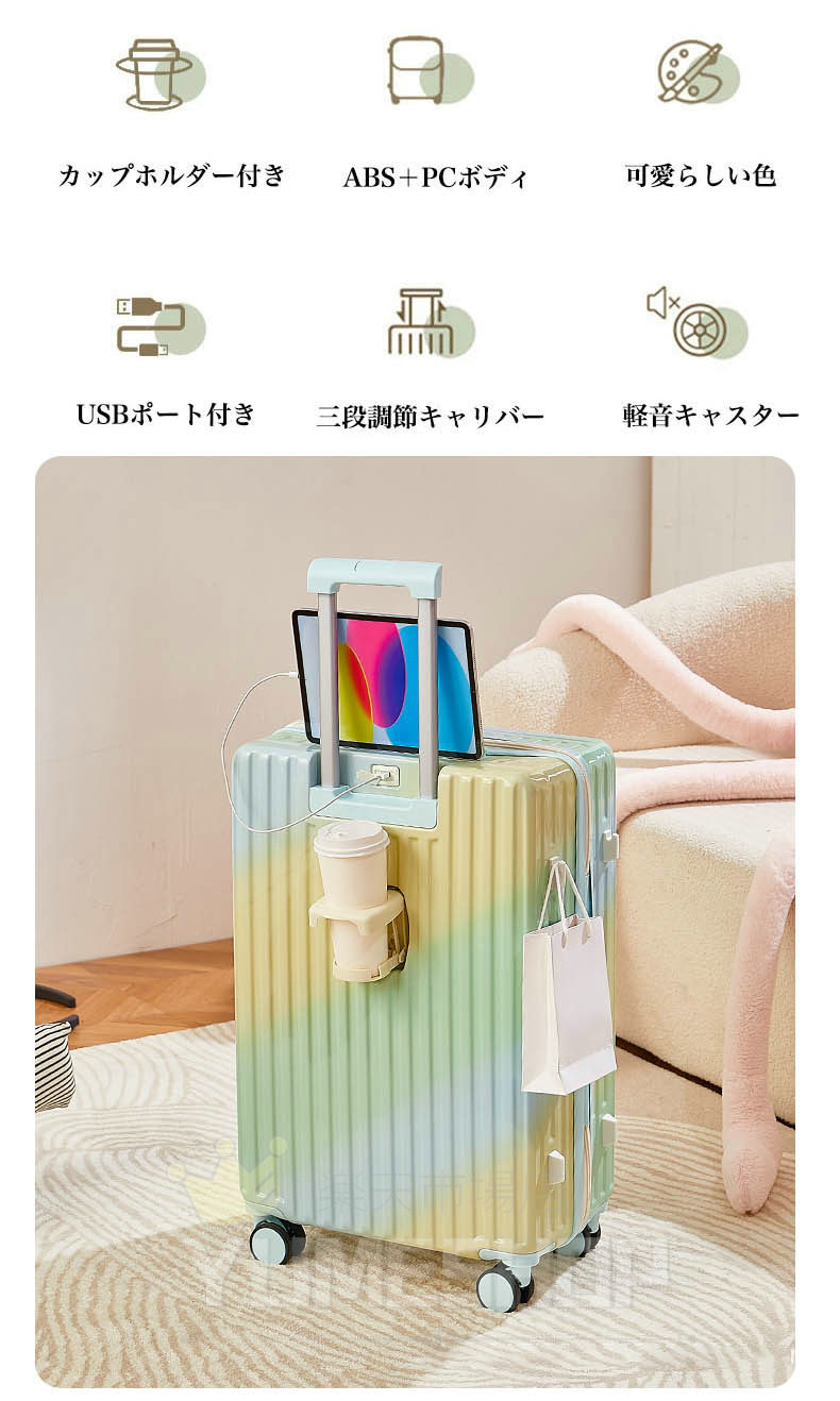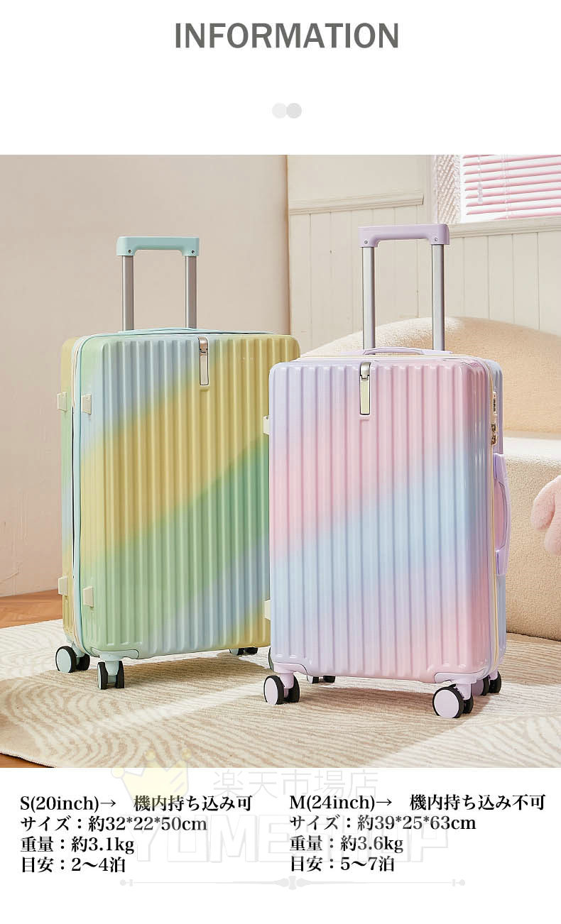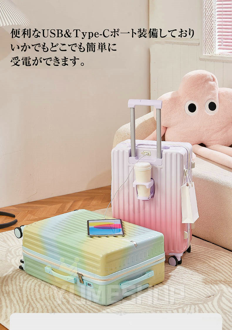 スーツケース グラデーション キャリーケース 5カラー 小型 中型 大型 ファスナー ダブルキャスター サスペンション 耐衝撃 暗証番号コード パーテーション 旅行 かわいい レディース 1 おしゃれ
