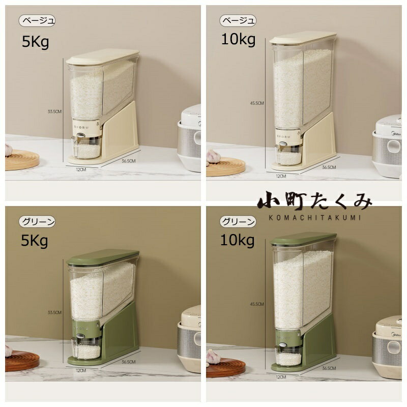 新品 米びつ スリム ライスストッカー 保存容器 調味料入れ 米びつ 人気 ベージュ グリーン 5KG 10KG