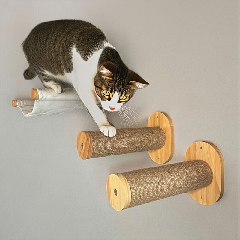 キャットステップ ハンモック 猫 階段 ペット ペットグッズ 大人気! 個別の猫ベッド 猫用登山ポスト 2 本 ステップ2個+ハンモック
