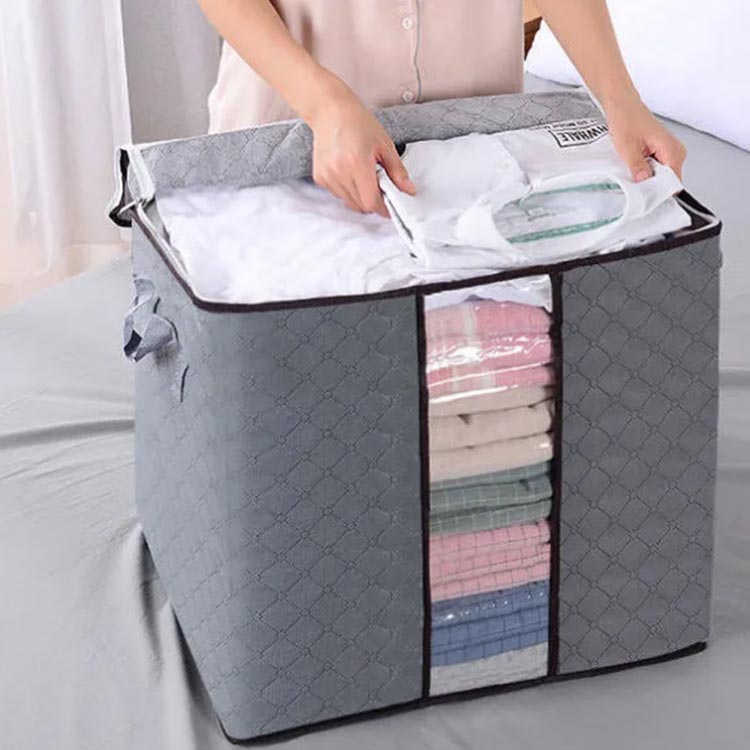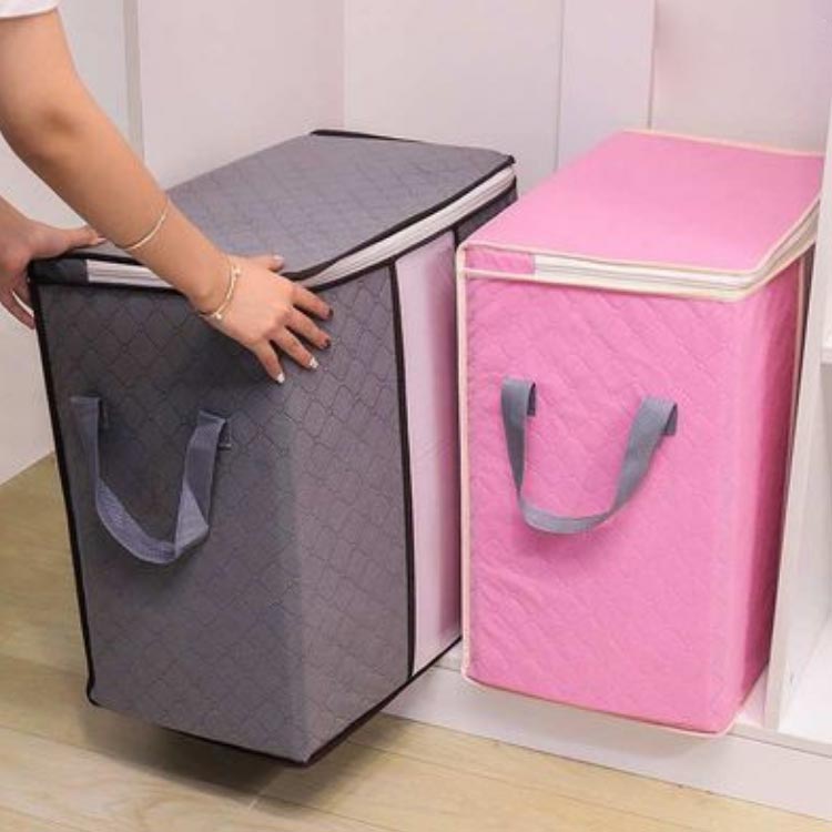 布団収納ケース キューブ型 布団袋 布 グレー ブルー レッド ピンク パープル 横型(70*50*30cm) 横型(60*40*35cm) 縦型(50*28*48cm)