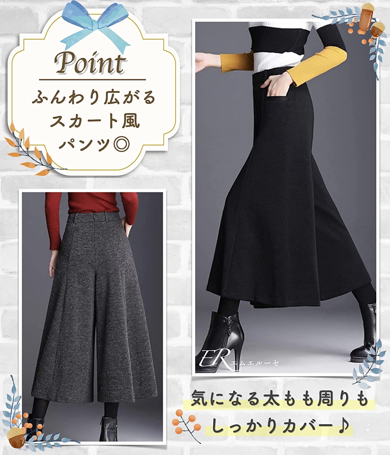 ミモレ丈 Aライン ワイドパンツ ガウ グレー ブラック S M L XL 2XL 3XL 4XL