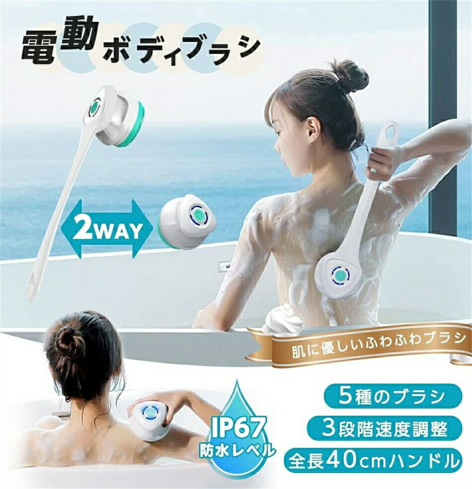 電動ボディブラシ 背中ブラシ USB充 日用品雑貨 文房具 手芸 新登場! グリーン ホワイト パープル