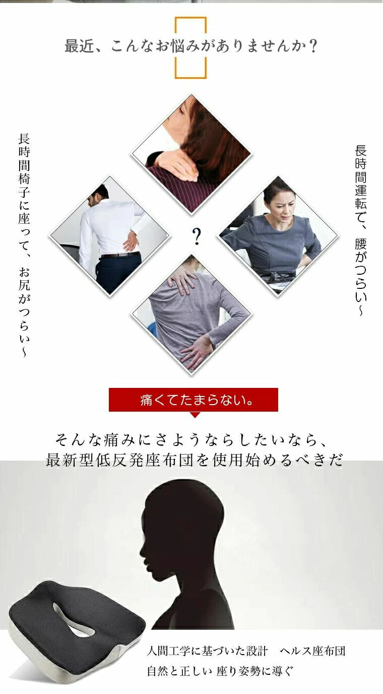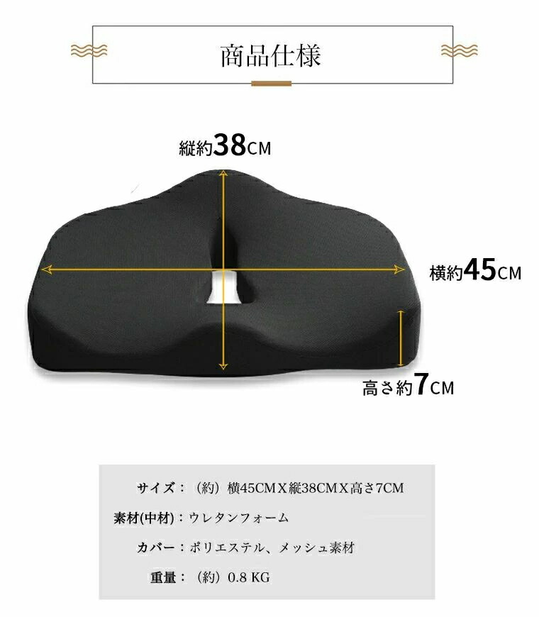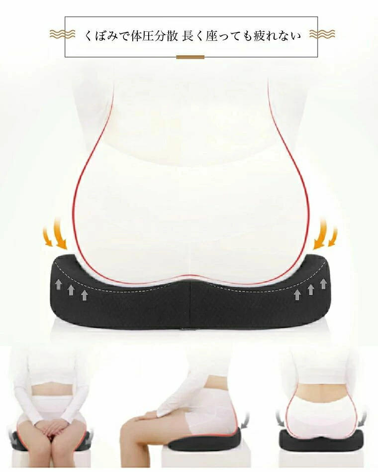 座布団 クッション中空型 腰痛改善 骨 ブラック+グレー ブラック