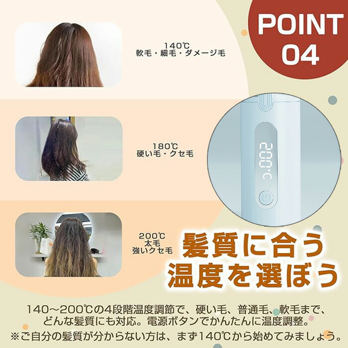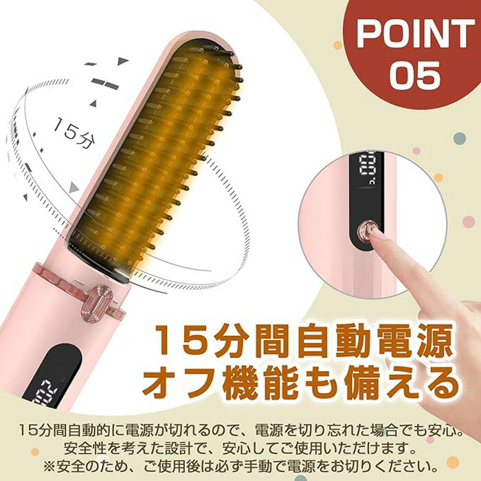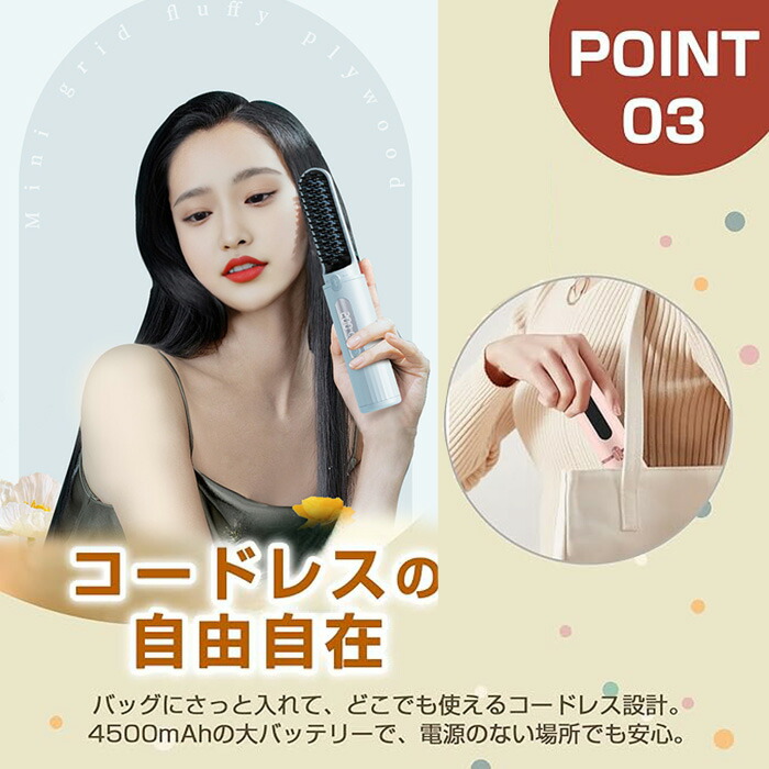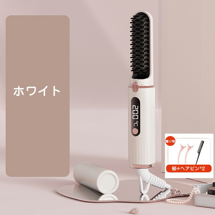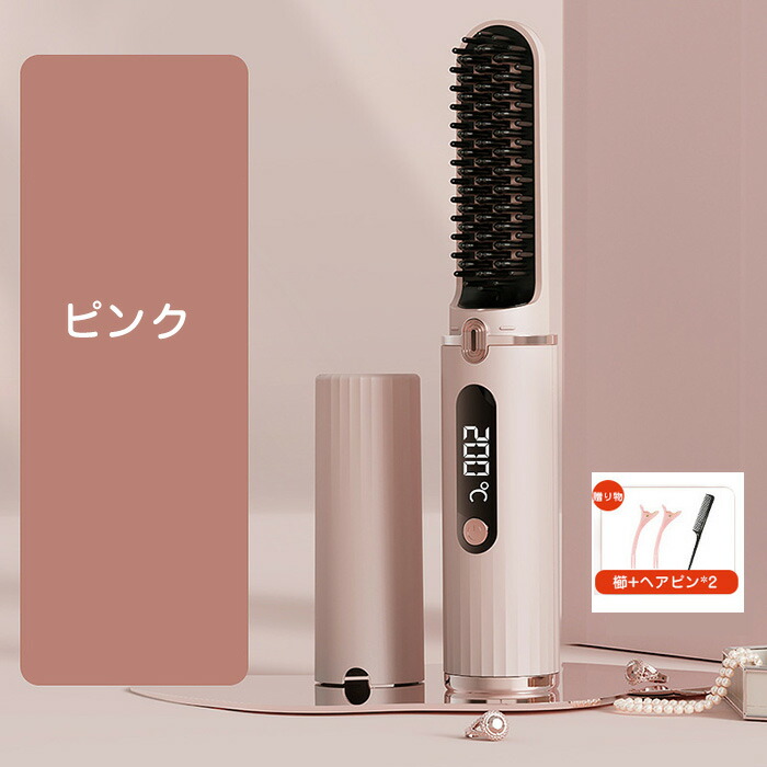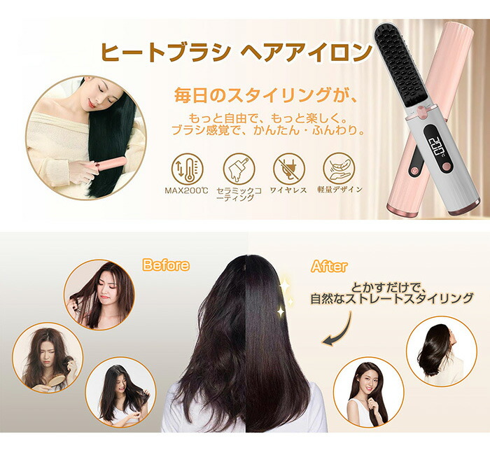 ヒートブラシ ヘアアイロン コードレス ピンク ブルー ホワイト ブラック