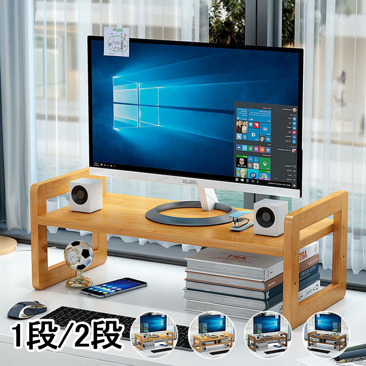 モニター台 卓上 おしゃれ モニタース ブラウン ナチュラル 1段 2段