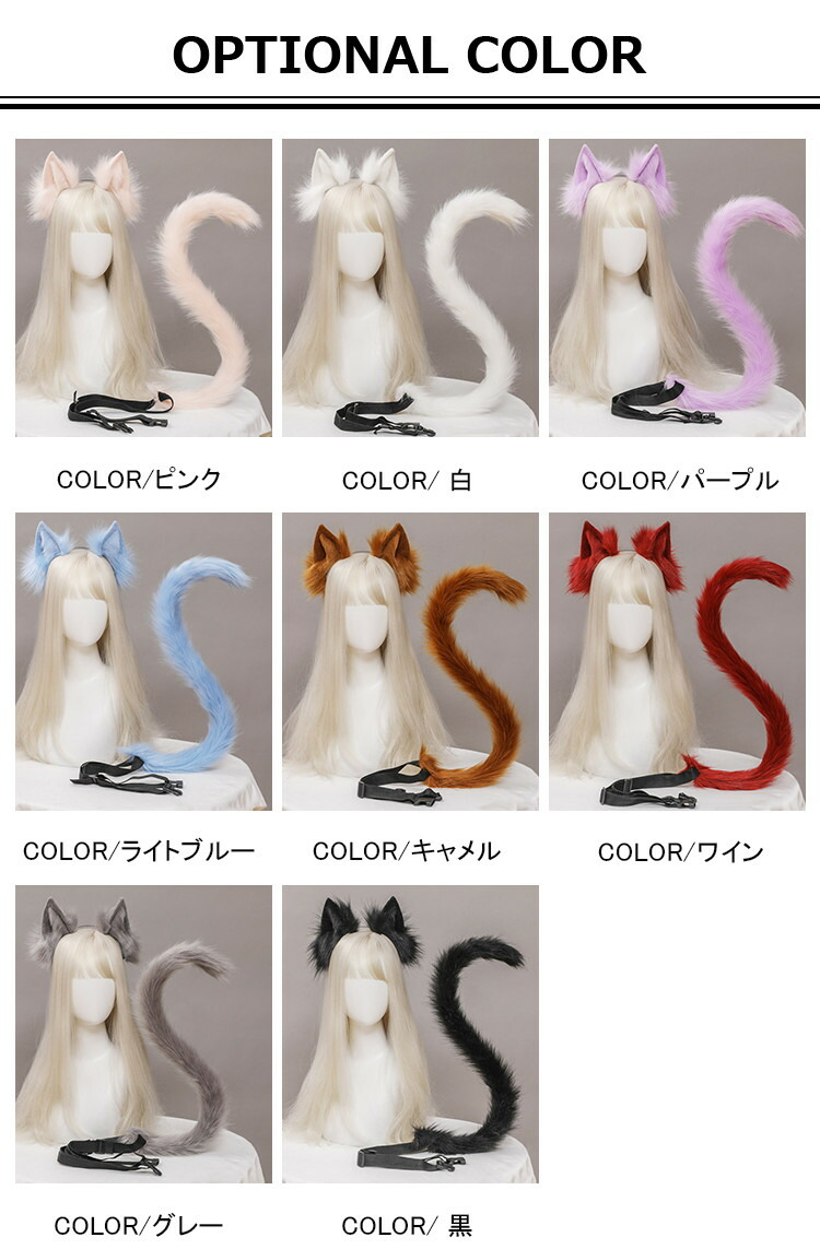 獣耳 カチューシャ 猫 ネコ しっぽ コスプレ 変装 仮装 キャップ ヘッドアクセサリー 早い者勝ち ピンク 白 パープル ライトブルー キャメル ワイン グレー 黒