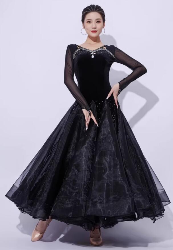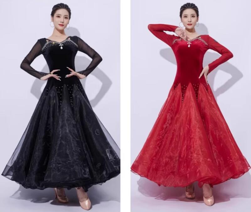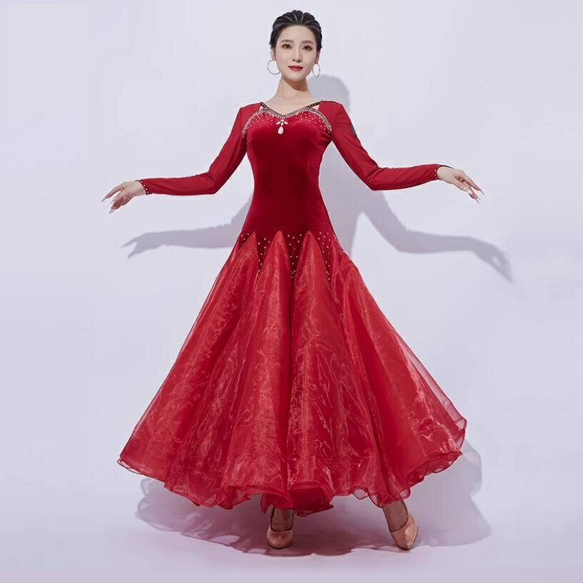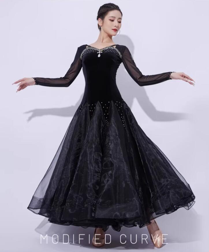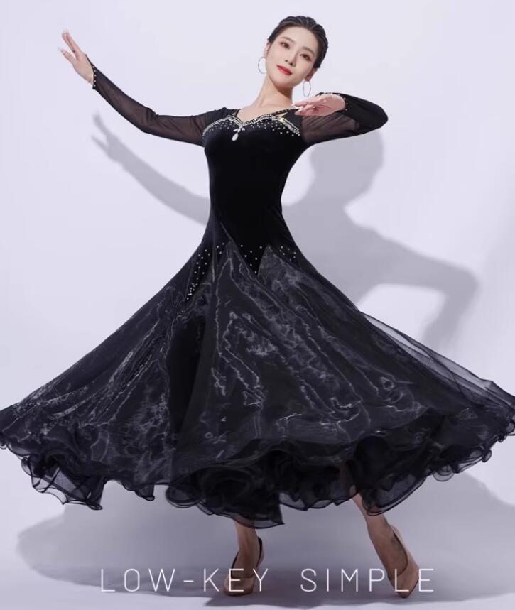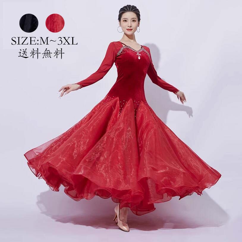 大きい裾 モダンドレス ロング丈ワンピース 社交ダンス ダンスウェア スレンダー モダン衣装 フラメンコ スタンダードドレス ワルツ レッスン着 社交ダンスドレス ゴージャス 社交ダン 競技用のドレス