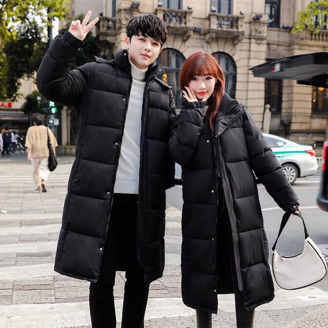 ダウンジャケット ロングコート 綿入れ ダウンコート 長袖 おしゃれ 韓国風ロング丈 軽量 アウター 秋冬 シンプル 男女兼用フード付き お揃い ペアルック メンズファッション 防寒 レ 大きいサイズ