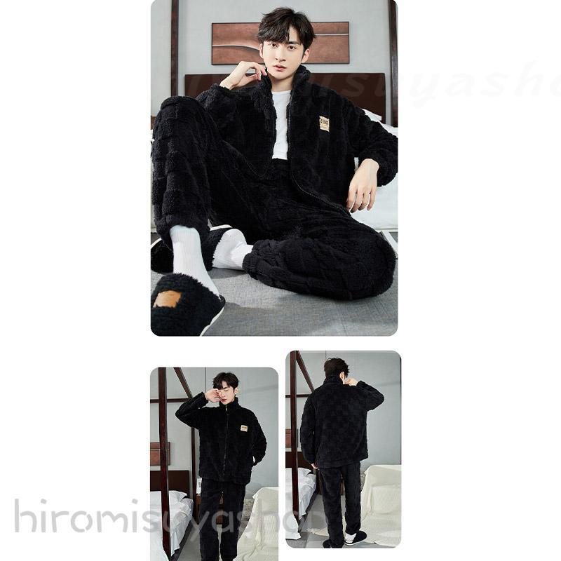 パジャマ メンズ 長袖 冬用 防寒 暖 インナー 下着 ナイトウエア 続々入荷中 ブラック ダークグレー L XL 2XL 3XL