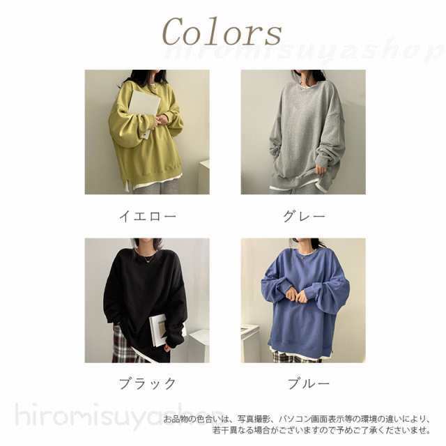 トレーナー レディース 裏起毛 スウェ トップス スウェット トレーナー 人気 イエロー グレー ブラック ブルー M L XL 2XL