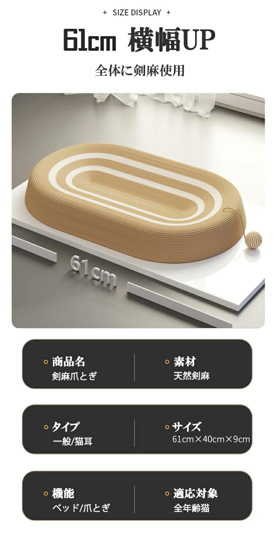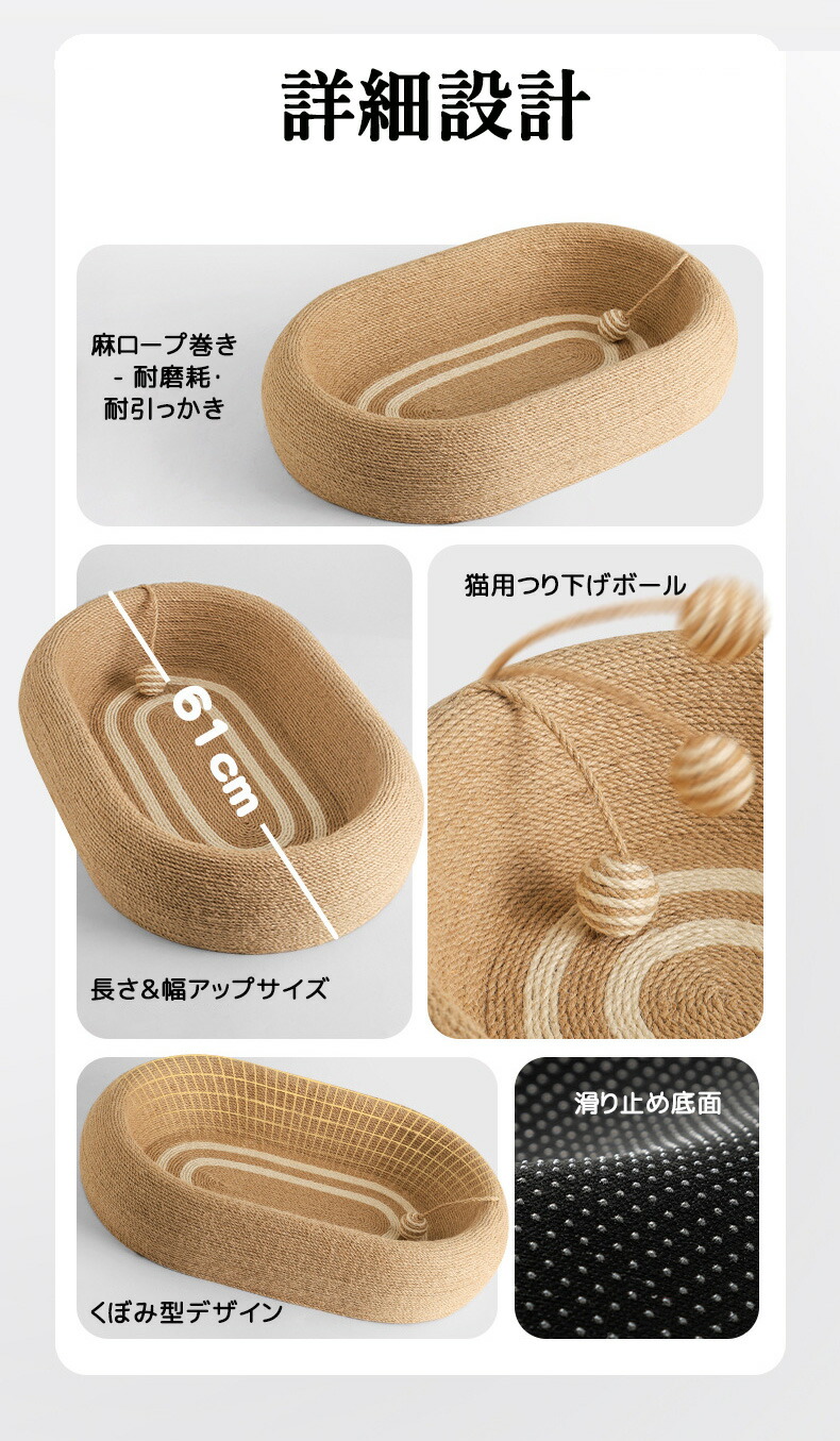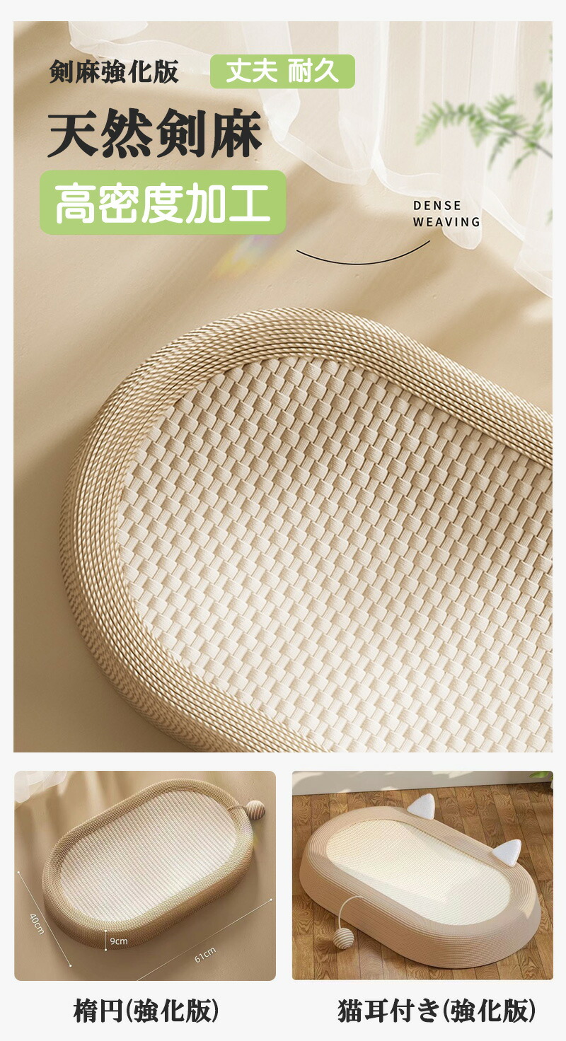 猫 爪研ぎ 麻 ベッド 猫爪とぎ 段ボ 猫用品 ベッド マット 寝具 ベッド 通販 楕円 猫耳付き 楕円(強化版) 猫耳付き(強化版) 楕円(白い単環) ペットクールマット 楕円1(くぼみベッド) 楕円2(くぼみベッド) フリーサイズ S(直径40cm)