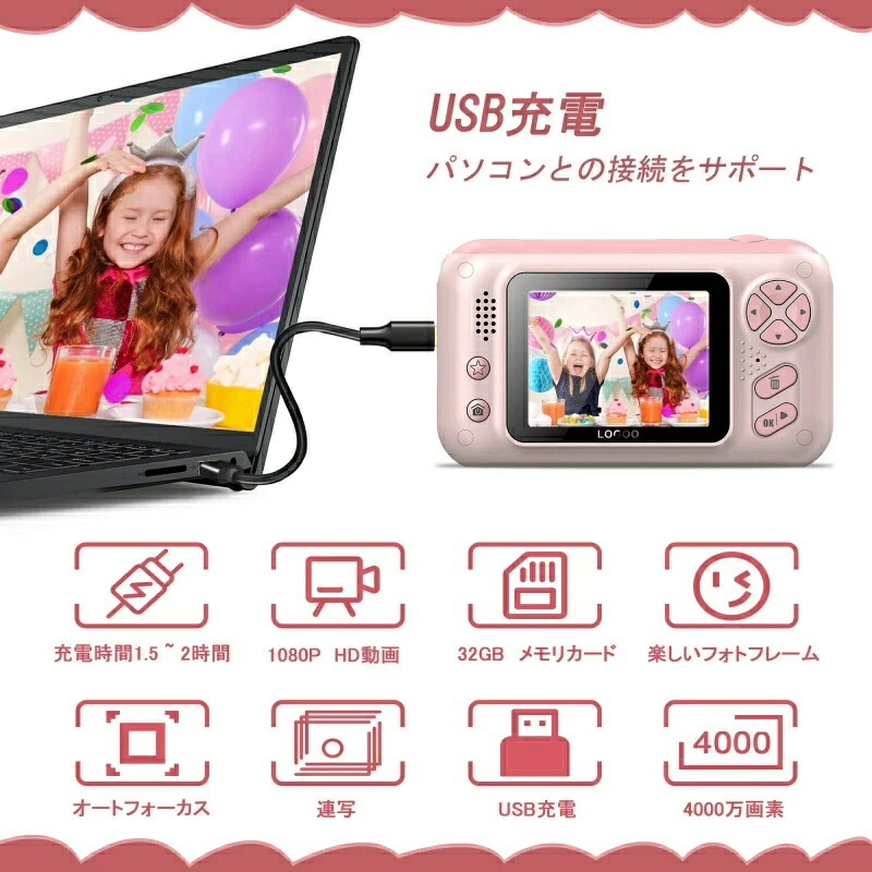 トイカメラ 子供 キッズカメラ 400 ピンク ブルー
