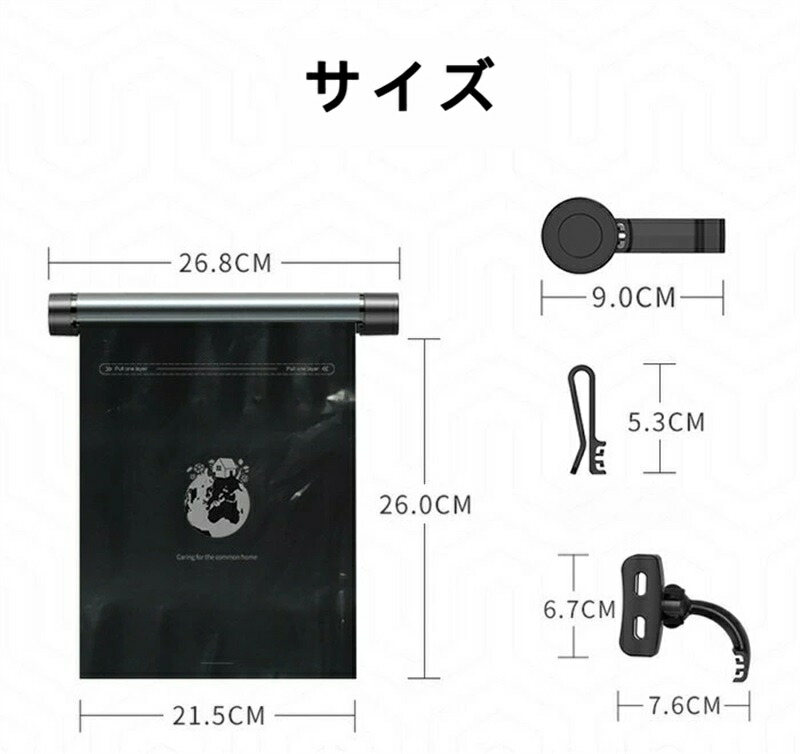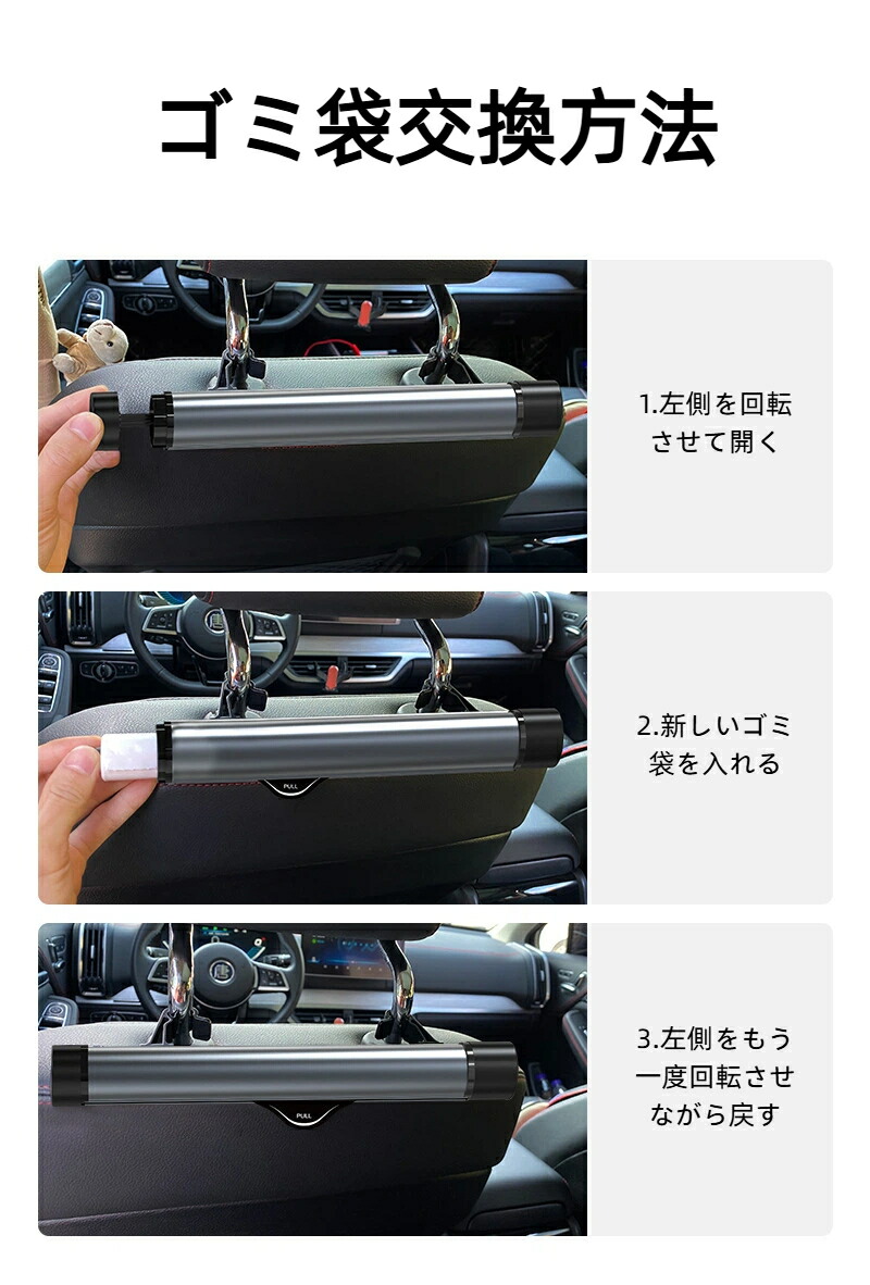 ゴミポケット収納 ローラー式 車載 隠 ブラック グレー ブラック(スマホホルダー付き) グレー(スマホホルダー付き) ゴミ袋単品(2巻セット)