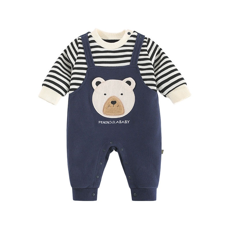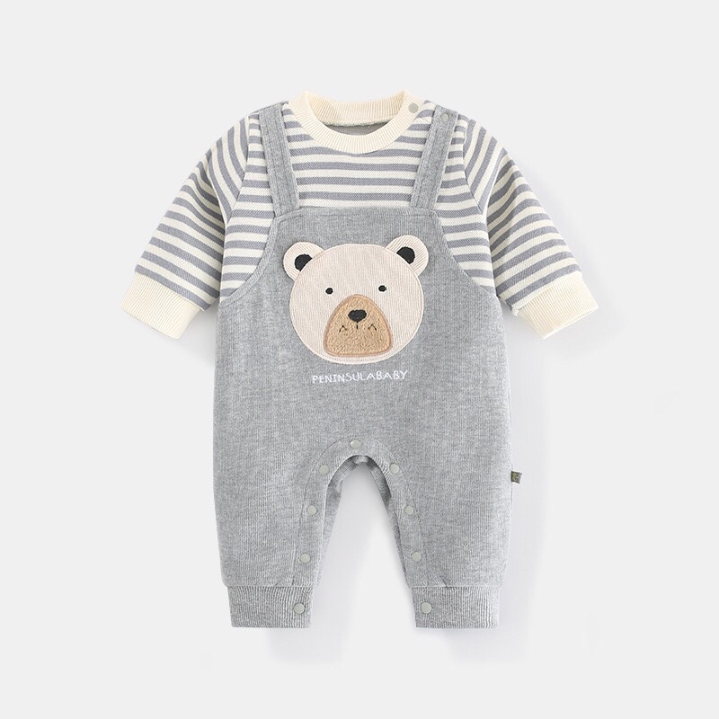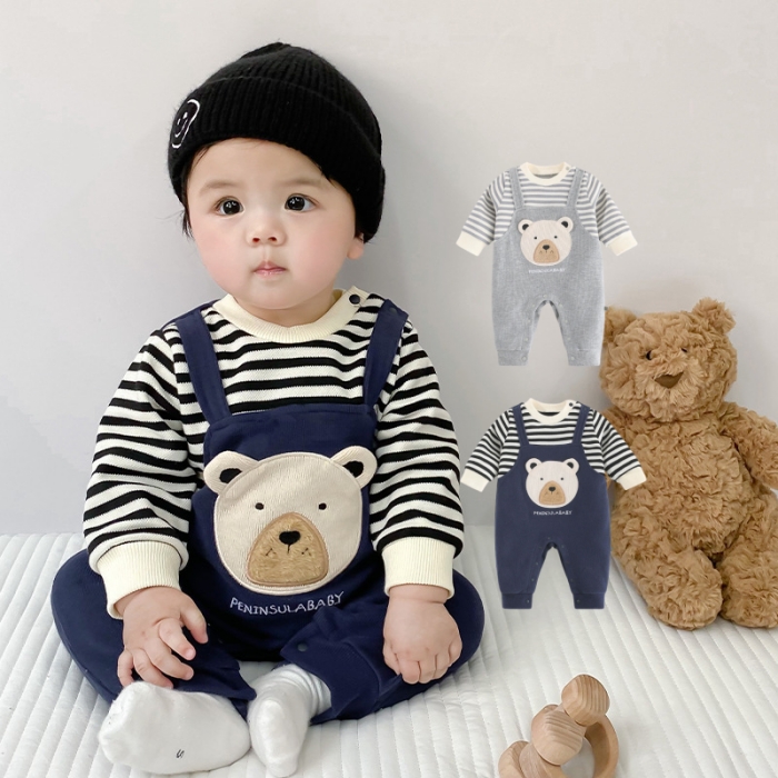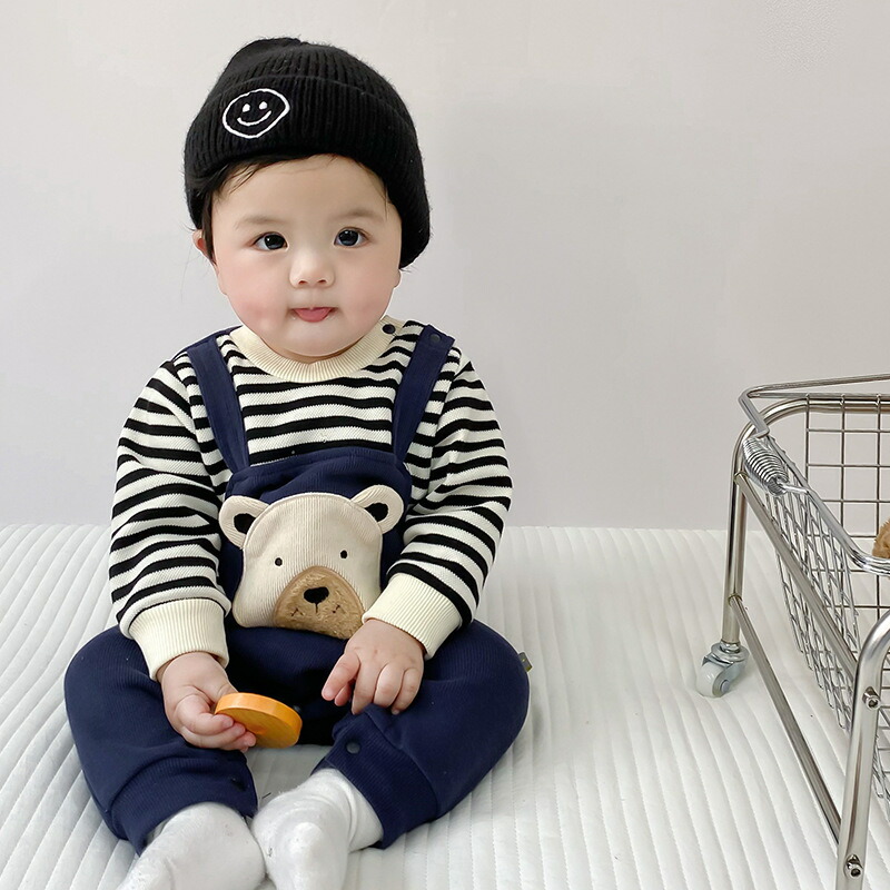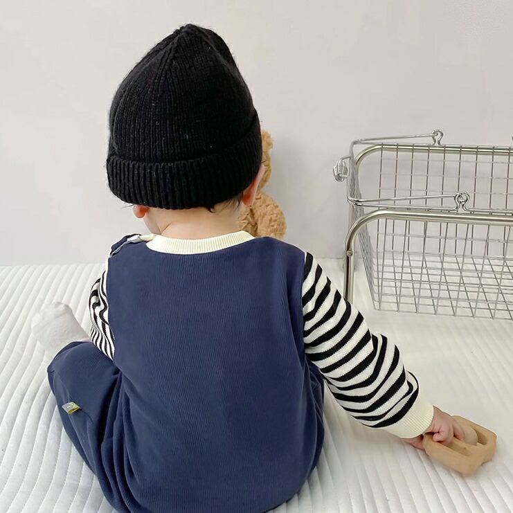 ロンパース 長袖 男の子 女の子 秋 キッズ ベビー マタニティ 人気 ネイビー グレー 66cm 73cm 80cm 90cm
