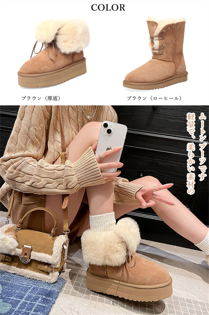 ムートンブーツ レディースブーツ ブー 靴 早い者勝ち ブラウン(厚底) ブラウン(ローヒール) 22.5 23.0 23.5 24.0 24.5 25.0
