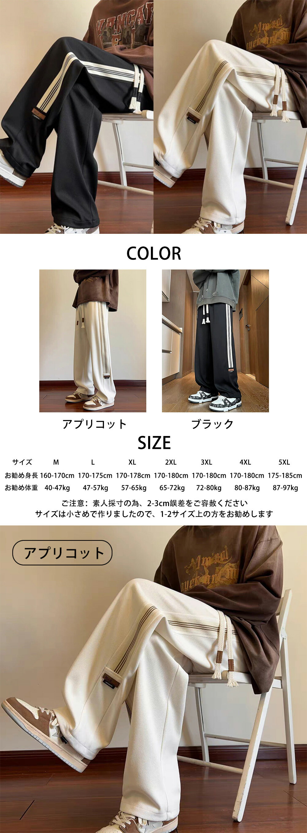 55%OFF ワイドパンツ ジョガーパ メンズファッション 続々登場 アプリコット ブラック M(S相当) L(M相当) XL(L相当) 2XL(L/LL相当) 3XL(2L/3L相当) 4XL(3L/4L相当) 5XL(4L/5L相当)