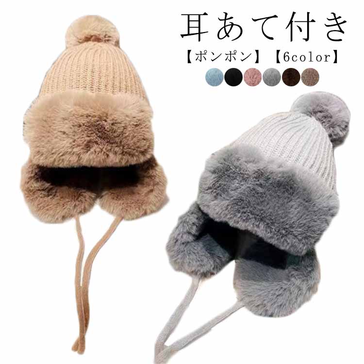 ニット帽 レディース 耳あて付き 冬 帽子 レディース帽子 ニット帽 通販 ブラック ブルー ピンク グレー コーヒー ベージュ