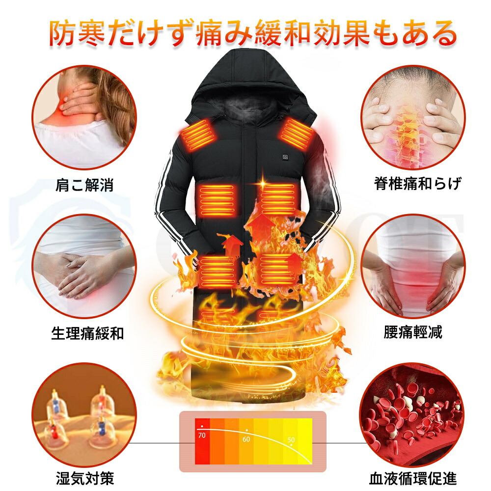 ベンチコート ロングタイプ 電熱ジャケット 発熱ジャケット 11エリア発熱 電気ジャケット 電熱ウェア アウター 日本製 繊維ヒーター 前後3段温度調整 中綿コート インナー 水洗い 速暖 発熱コート
