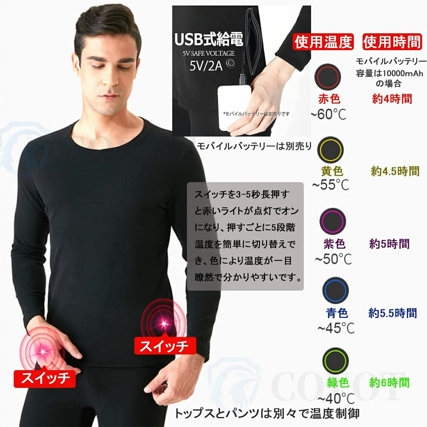 電熱インナー 電熱パンツ 電熱インナー スポーツ アウトドア 超目玉商品 S M L XL 2XL 3XL 7個ヒータートップス 7個ヒーターパンッ 11ヒータートップス 11個ヒーターパンツ 14個ヒーターセット 22個ヒーターセット
