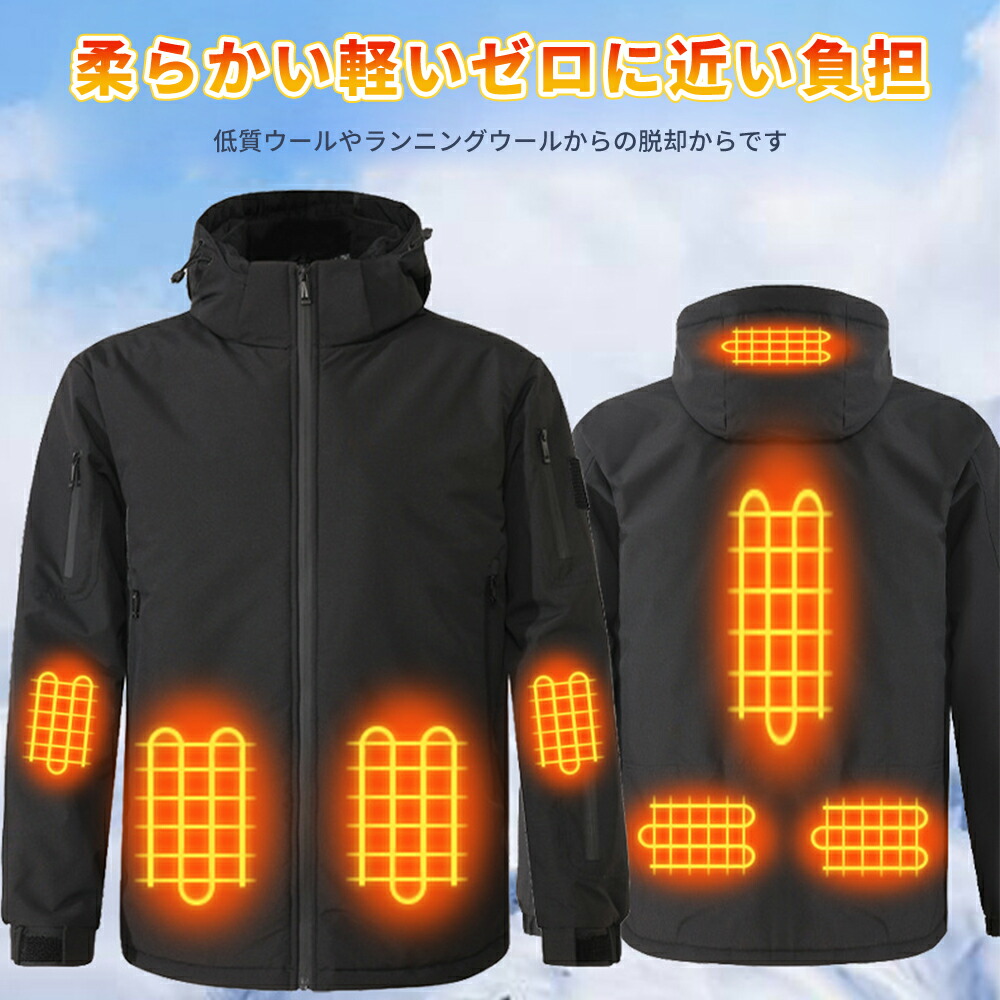 電気ジャケット 3段温度調整 ヒータージャケット 電熱ウェア アウター 長袖 8箇所発熱 USB給電 電熱服 発熱コート バイクウェア インナー 水洗い 速暖 極暖 軽量 スキー 水洗い可着 発 釣り