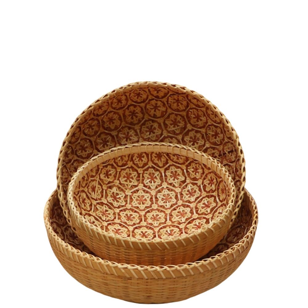 竹かご 竹製収納バスケット フルーツ 生活雑貨 その他 通販 細編み花底竹籠(3点セット) 細編み花底竹籠(中:22×8) 細編み花底竹籠(大:25×9) 細編み花底竹籠(小:18×7)
