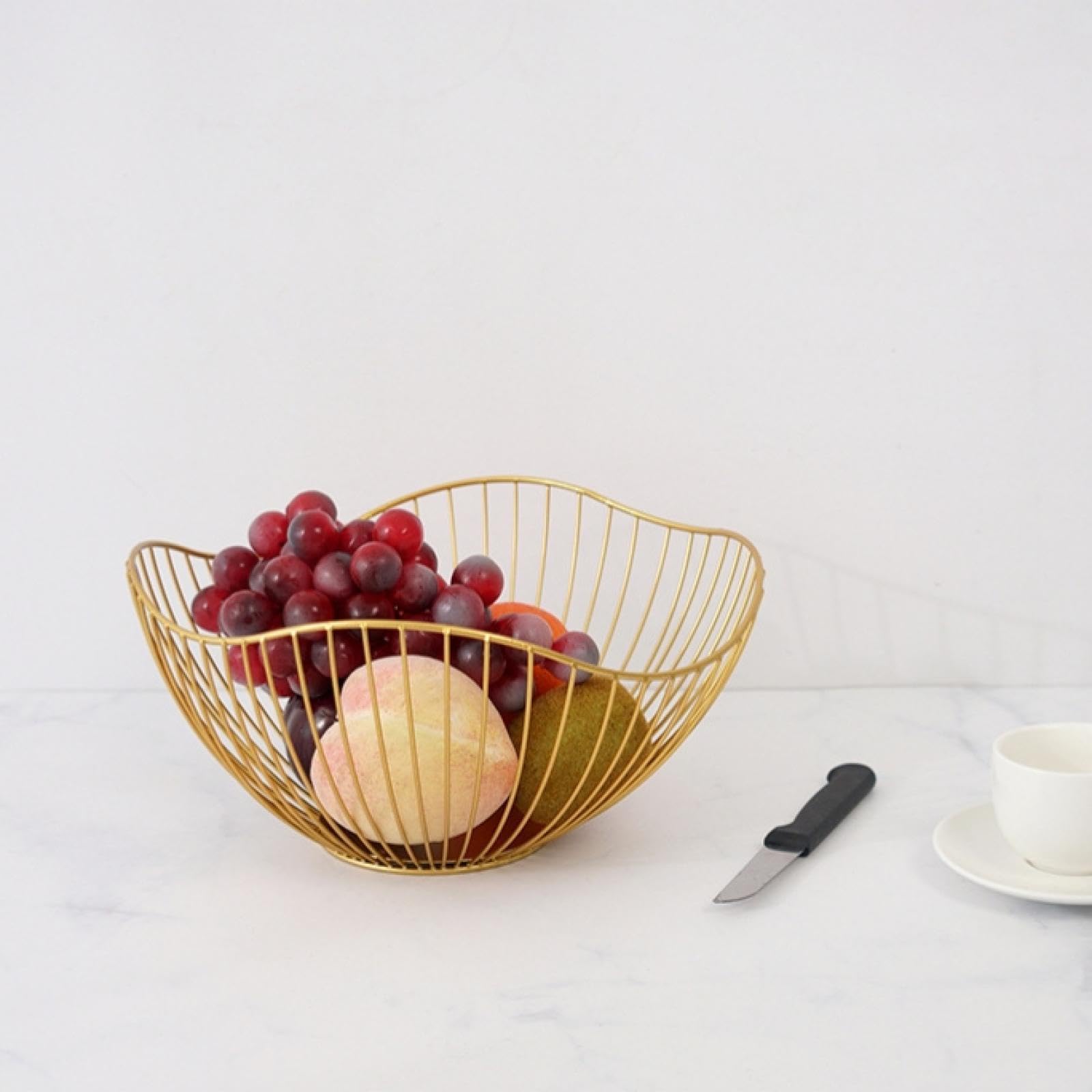 おしゃれな北欧スタイルのフルーツバスケット 鉄メッシュ編みフルーツバスケット 家庭用 インテリア フルーツ収納 果物 小物入れ メタルワイヤー 長持ち 低い ブラック ゴールド