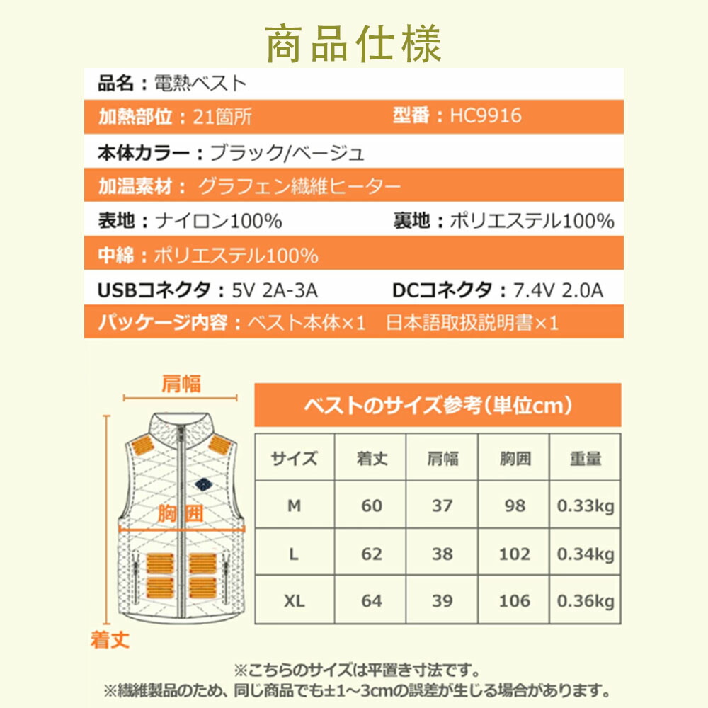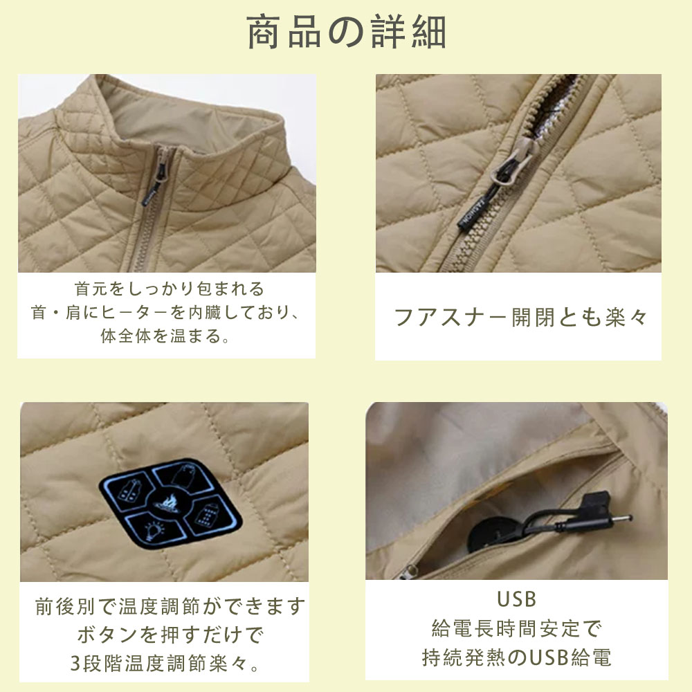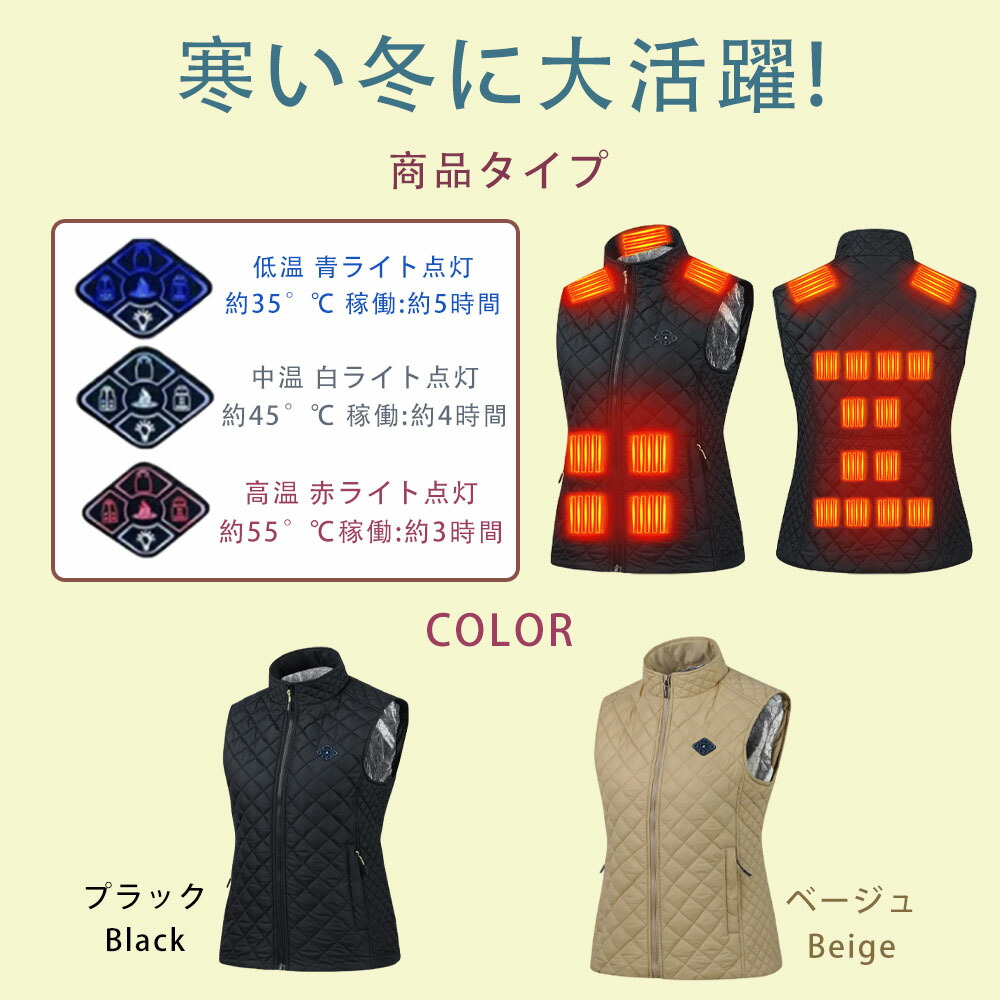 電熱ベスト ヒーターベスト インナー トップス ベスト 豊富 ブラック ベージュ M L XL