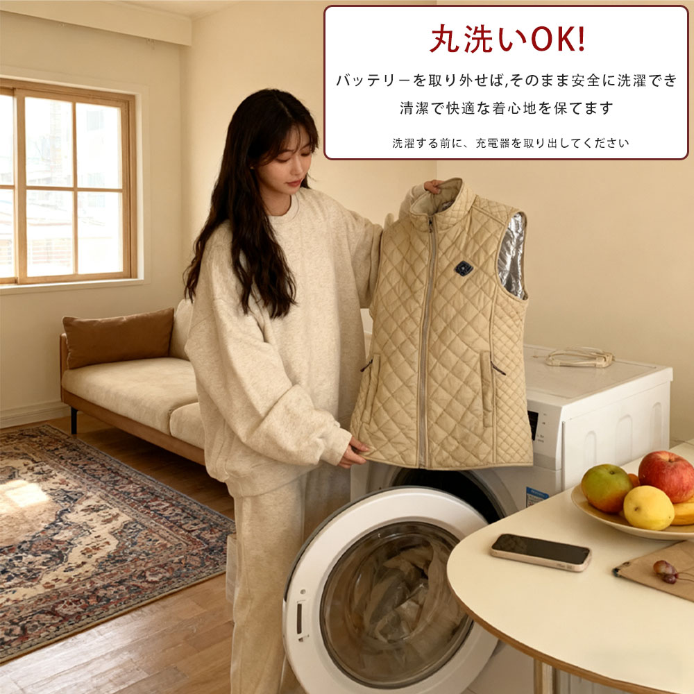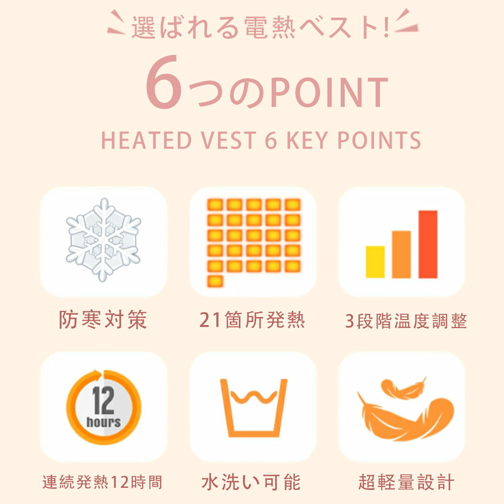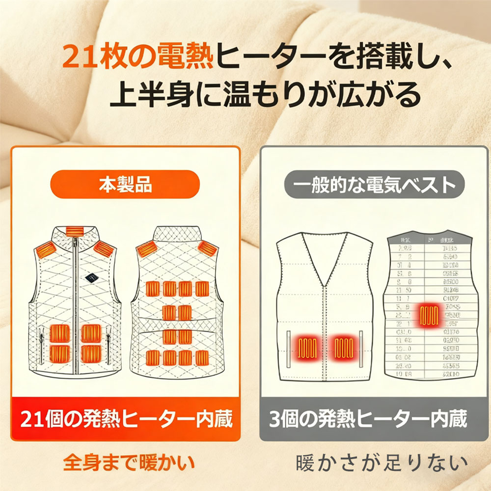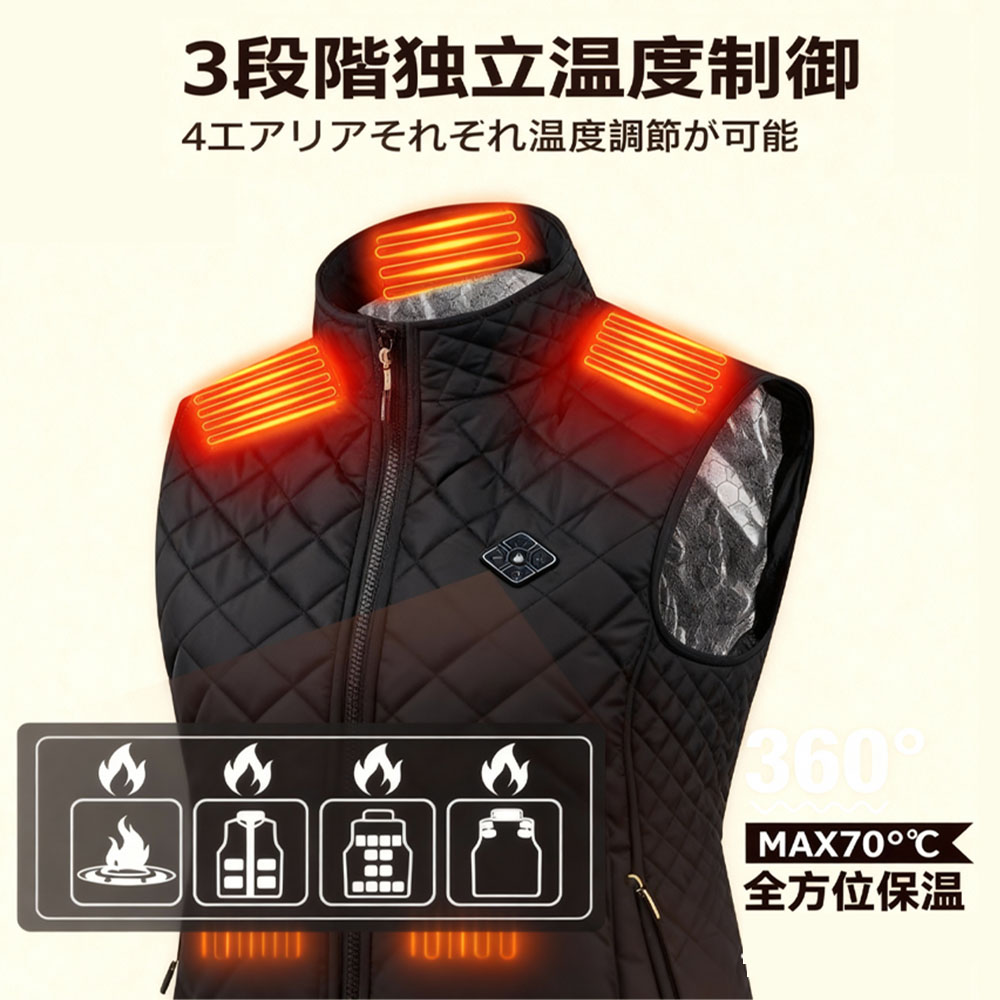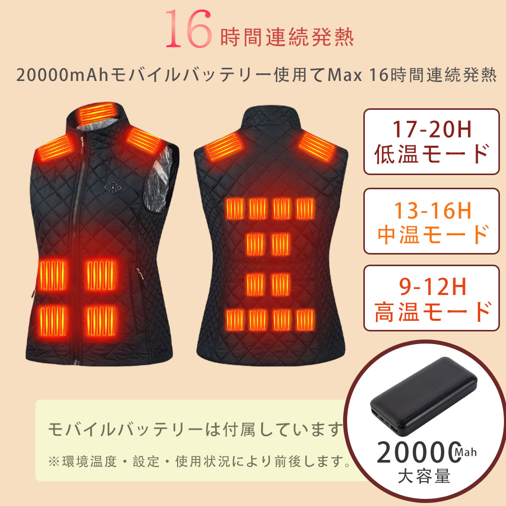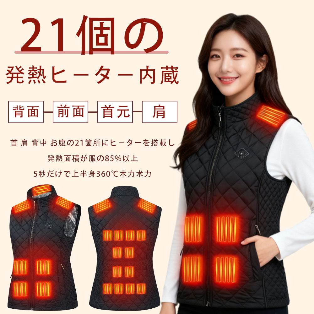 電熱ベスト ヒーターベスト インナー ヒートベスト 暖房ベストレディース 女性用 バッテリー付き 発熱ベスト 21箇所発熱 USB加熱 防寒ベスト中綿 電気ベスト 防寒 日本製繊維ヒーター