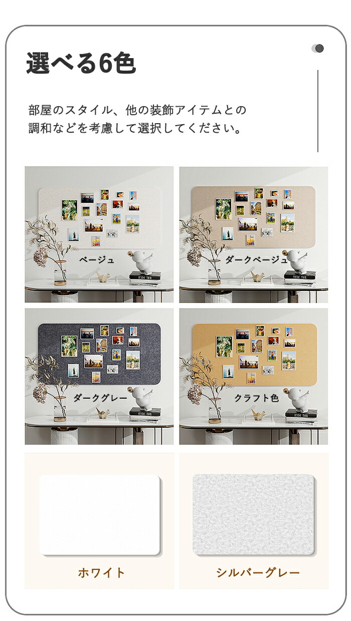コルクボード フェルト製 ボード 掲示 ホワイト シルバーグレー ベージュ ダークベージュ ダークグレー クラフト色 30×40cm 40×60cm 60×80cm 60×120cm