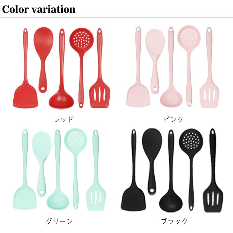 キッチンツール 5点セット シリコン製 キッチン用品 食器 調理器具 人気 ピンク グリーン ブラック レッド