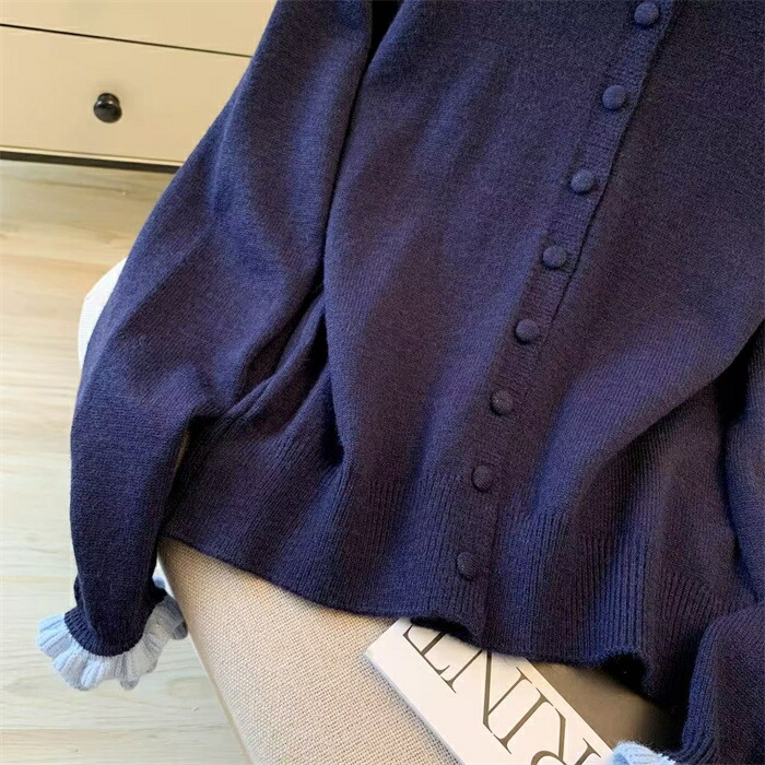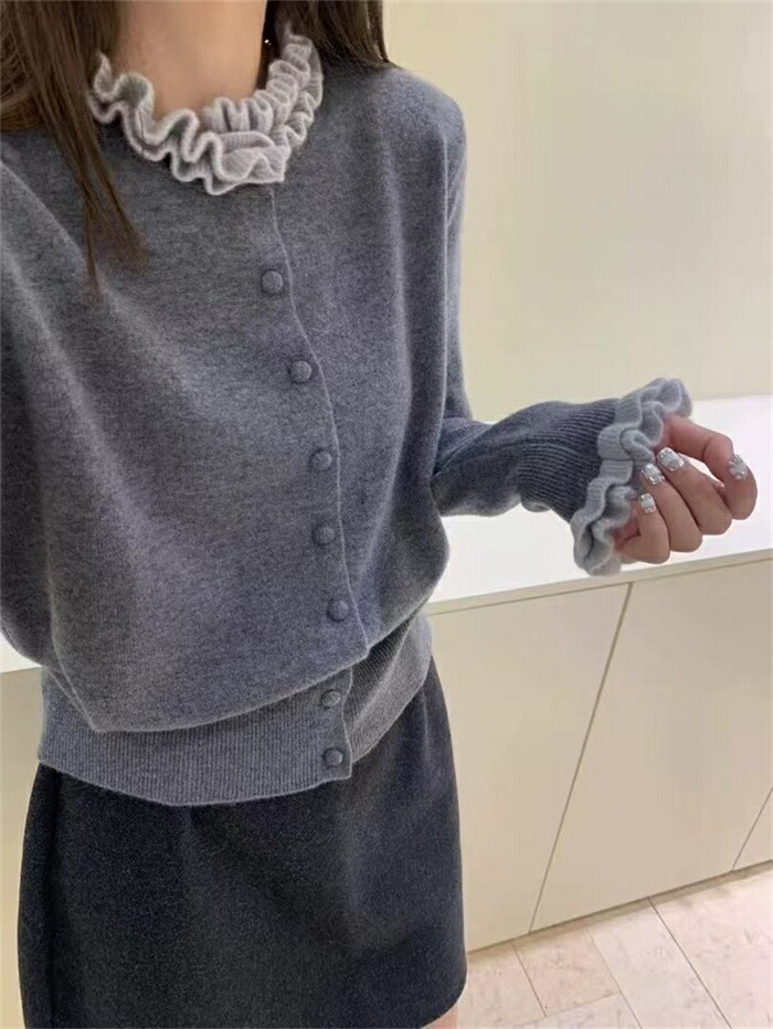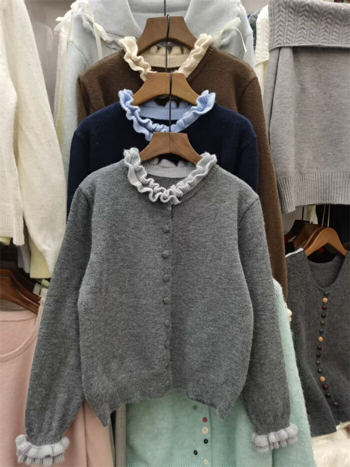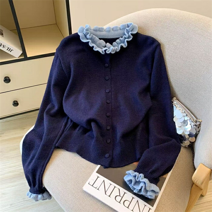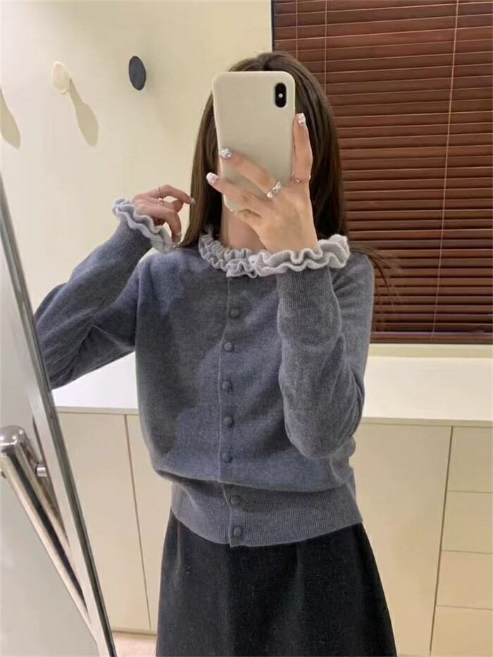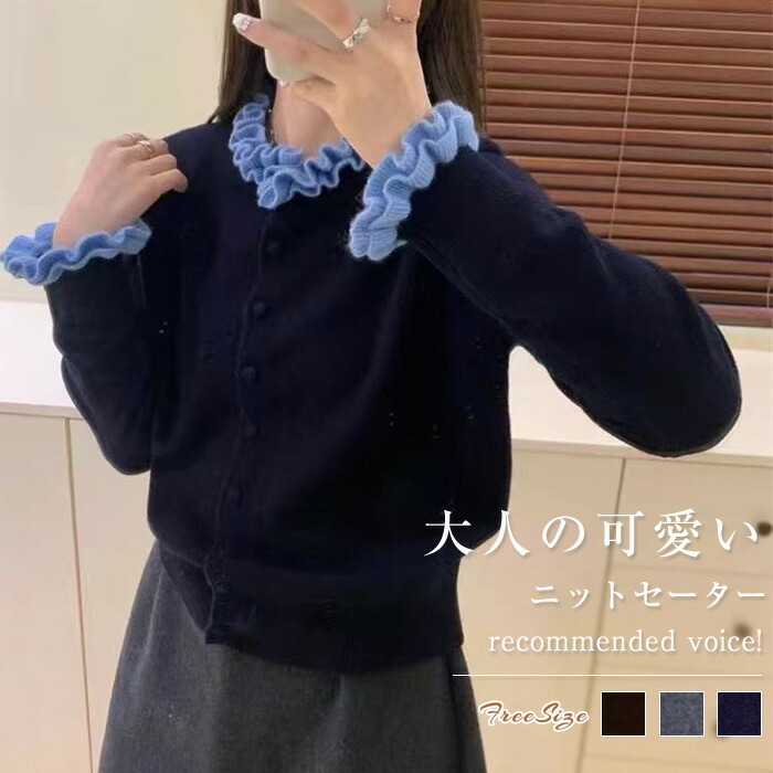 ニット カーディガン フリル襟 セータ トップス カーディガン ボレロ 新作 グレー コーヒー色 紺色