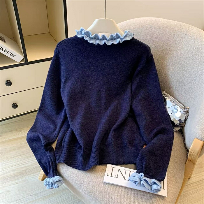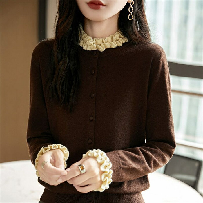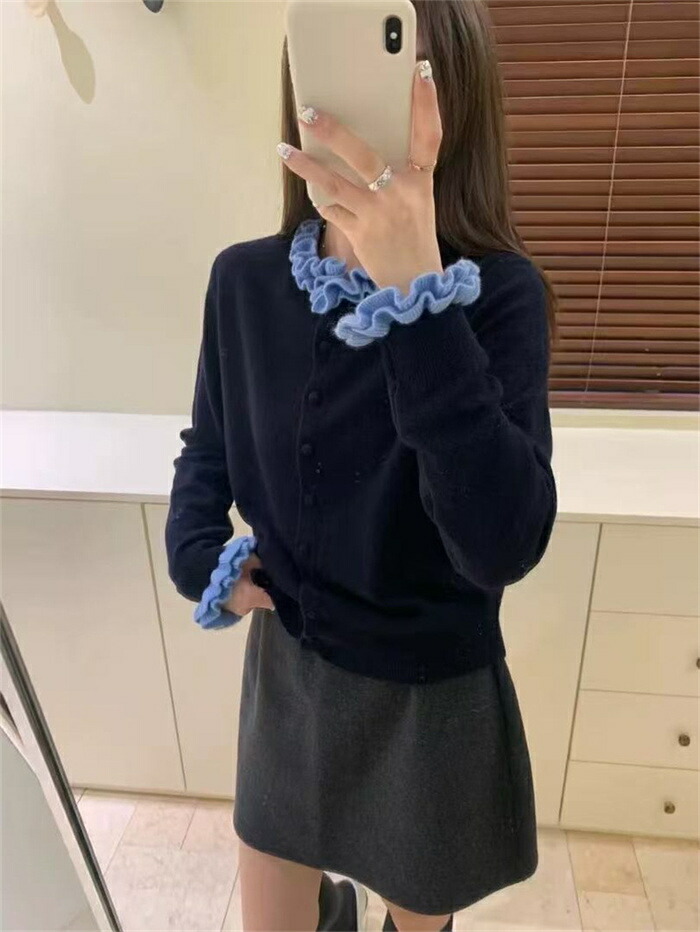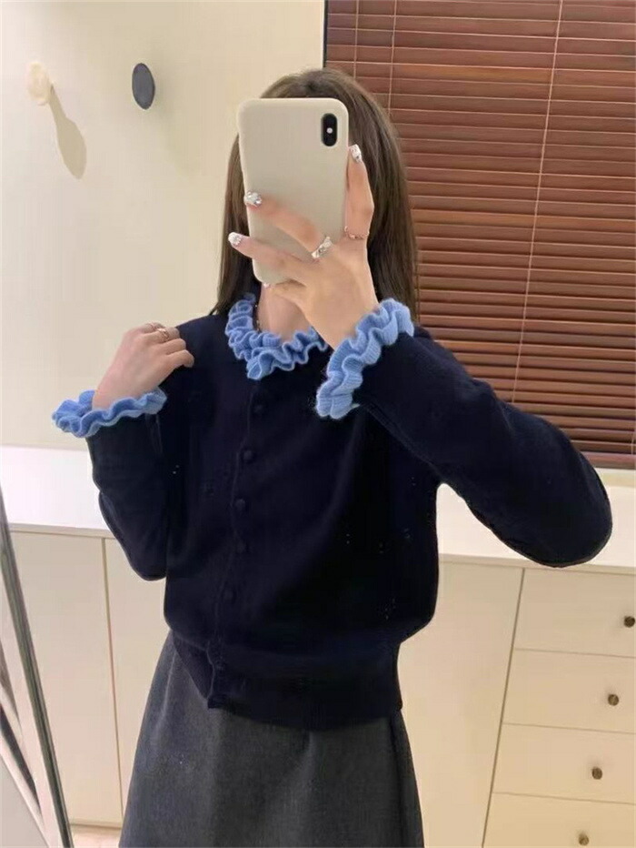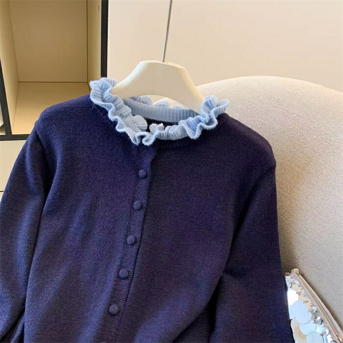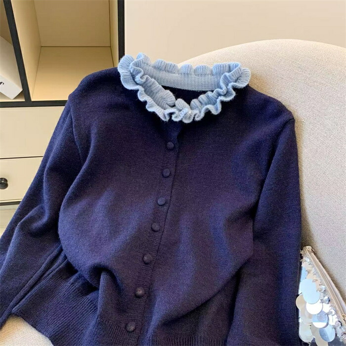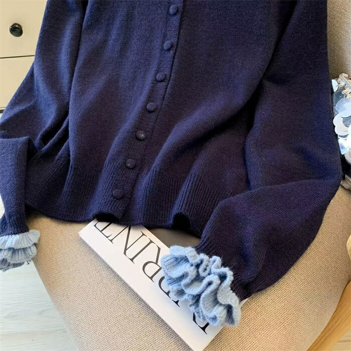 ニット カーディガン フリル襟 セータ トップス カーディガン ボレロ 新作 グレー コーヒー色 紺色