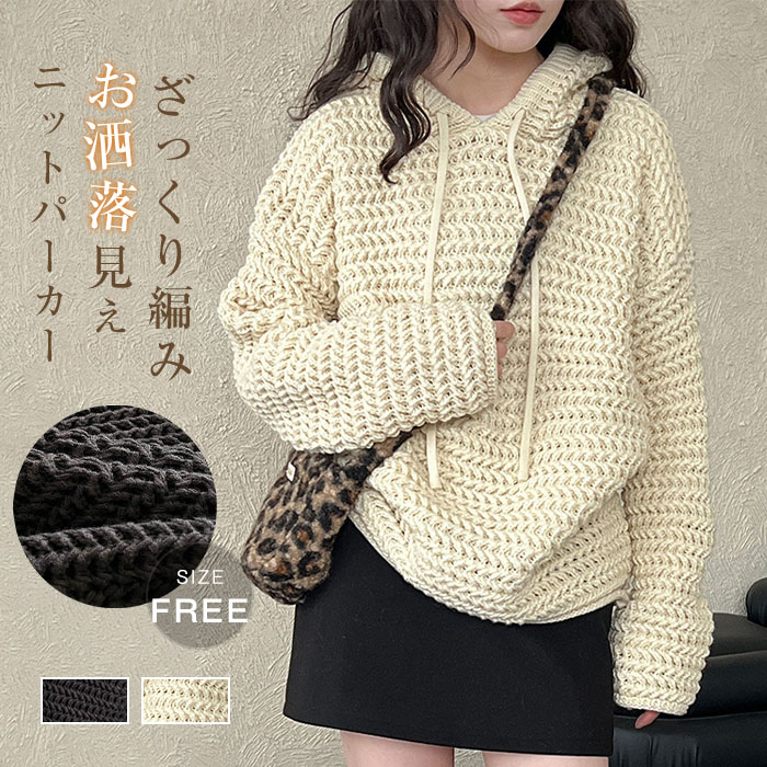 ニット パーカー セーター フード付き レディースファッション 早い者勝ち グレー ベージュ