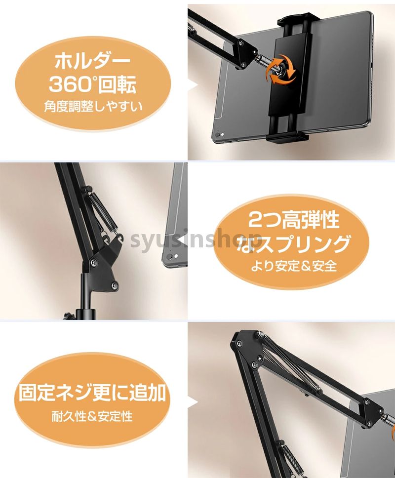 スマホスタンド 寝ながら タブレットスタンド アームスタンド折りたたみ 高さ調整 角度調整 スマホ iPhone スタンド ライブ配信 撮影 iPad