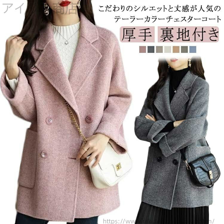 コート ショート丈 レディース 秋冬 チェスターコート スリム 厚手 メルトン 裏地付き テーラーカラー 低身長 ショートコート Pコート ピーコート カジュアル 韓国 あ 大人