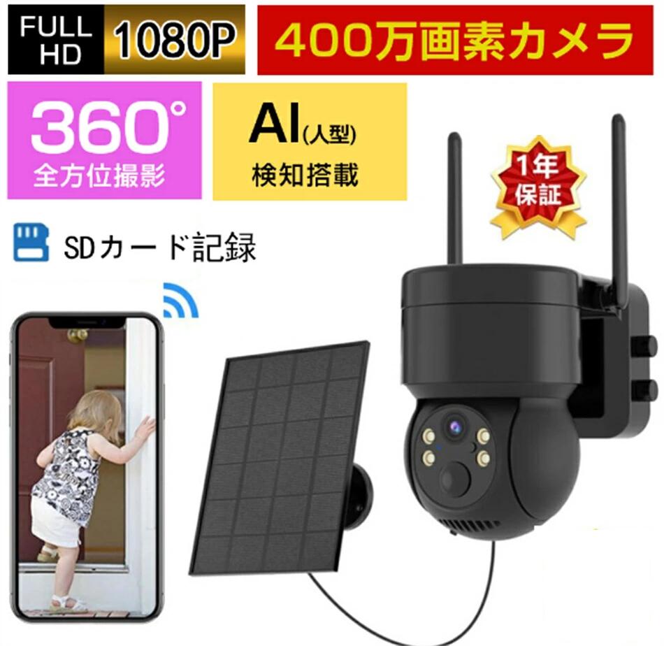防犯カメラ 屋外 工事不要 ワイヤレス ソーラー 充電式 バッテリー Wifi 家庭用 400万画素 電源不要 会話可能 スマホ 遠隔監視 監視カメラ 自動追跡 夜間カラー ステーション AI人感検知