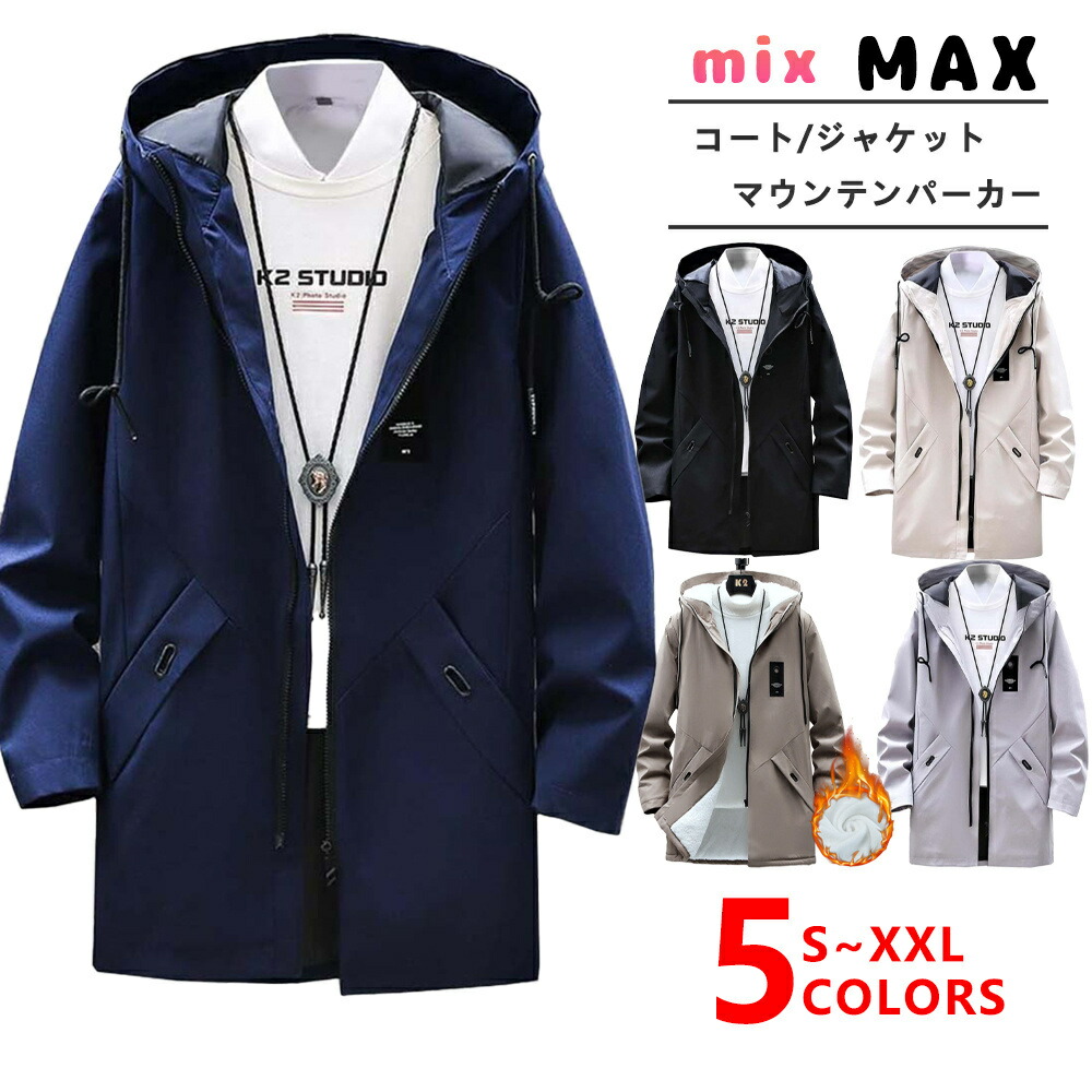 ジャケット メンズ コート 冬 アウター ロング 無地 カジュアル 裏起毛 防風防寒 アウトドア フード付き トレンチコート S-2XL 防風 シンプル マウンテンパーカー 防寒
