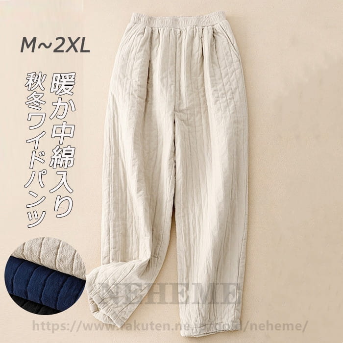 ワイドパンツ キルティング 防寒パンツ レディース 秋冬 中綿入