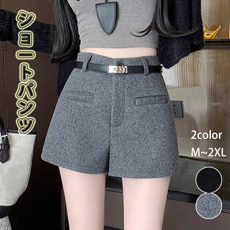 ショートパンツ レディース ワイドパンツ 秋冬 ラシャパンツ ハーフパンツ ミニ丈 ひざ上 ポケット付き ハイウエスト Aライン 短パン お洒落 暖かい 防寒 バルトなし キレイめ