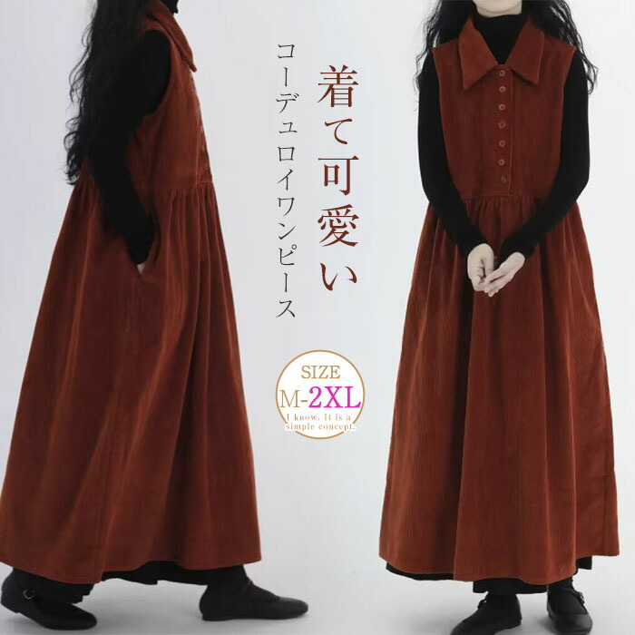 ワンピース レディース 秋冬 ノースリーブワンピース コーデュロイ 森ガール 大人可愛い きれいめ カジュアル おしゃれ 女性 30代 40代 50代