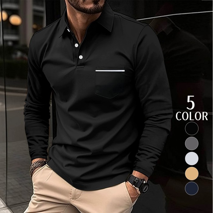 ポロシャツ メンズ 長袖 シャツ ボタンダウン ポケット おしゃれ 大きいサイズ 春 春服 秋服 立ち襟