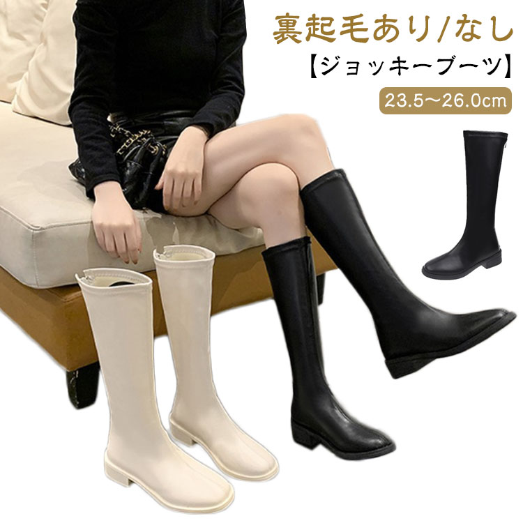 ジョッキーブーツ レディース ブーツ ロングブーツ 3.5cm ローヒール チャンキーヒール 膝丈 靴 美脚 太ヒール カジュアル 通勤 デート 裏起毛 レディースブーツ 秋冬 春 冬靴 歩きやすい