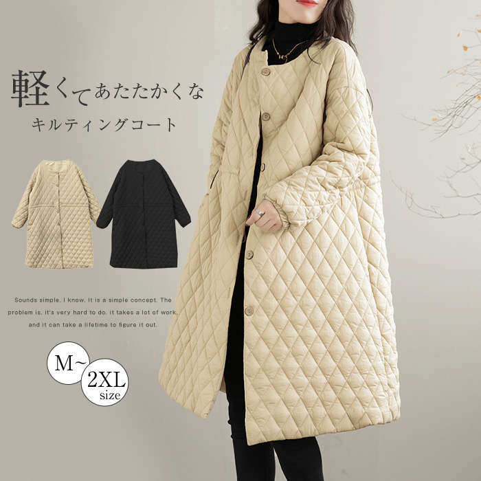 ロングコート アウター レディース コート 冬 黒 キルティングコート ミセス 大きいサイズ 防寒 あったか おしゃれ 可愛い 体型カバー