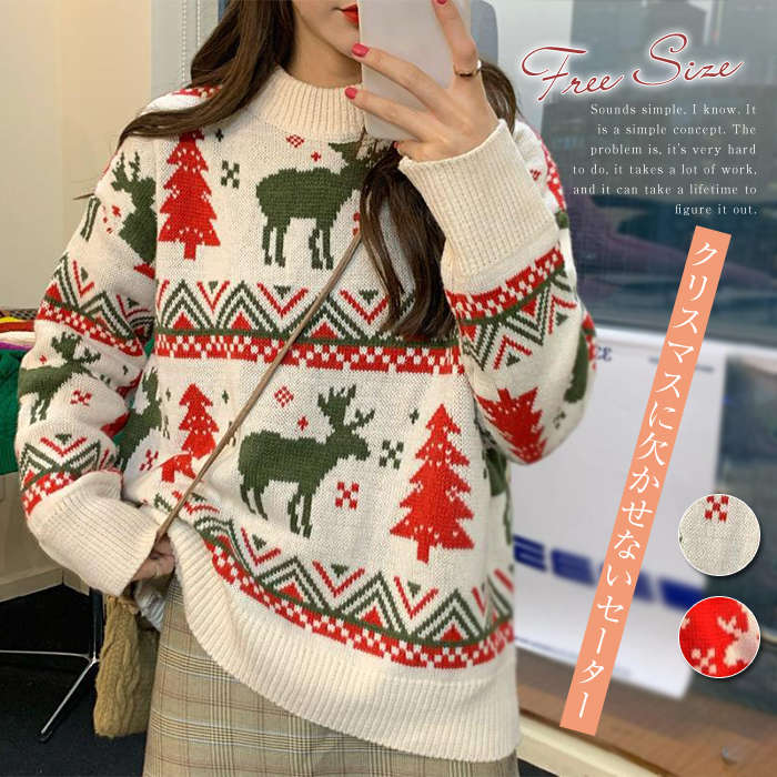 即納 ハイネック トナカイ クリスマスツリー サンタ服 ゆったり 秋冬 体型カバー おしゃれ カジュアル 可愛い 通勤