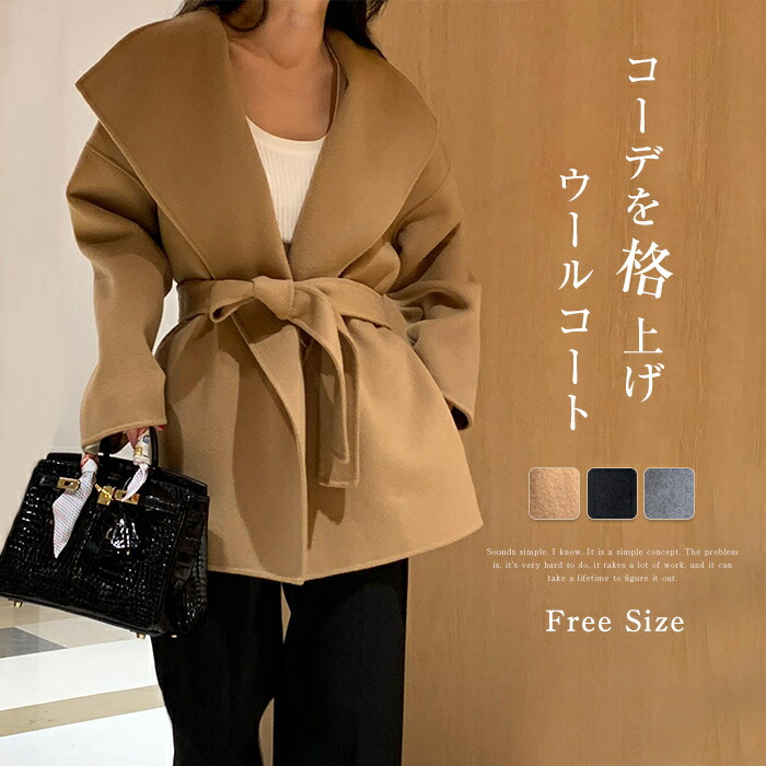 コート レディース 秋 冬 ウール混 エレガント ジャケット ミドル丈コート ロング 長袖 厚手 ウールコート アウター 無地 ベルド付き きれいめ 人気 カジュアル ビッグカラー 上品 高級 暖かい