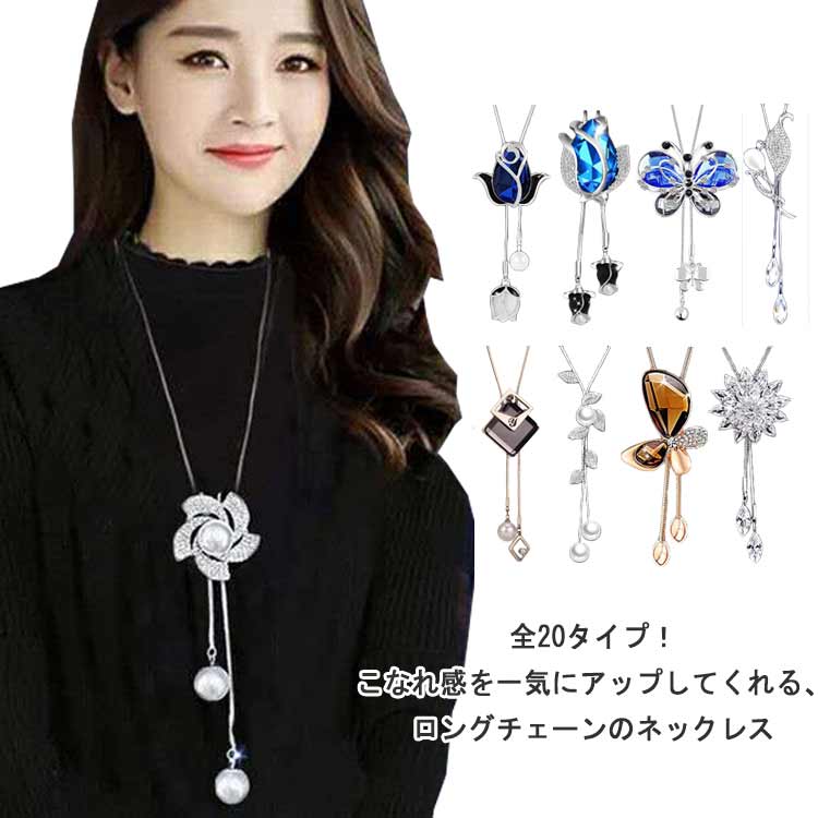 大人可愛い レディース ロングネックレス 全20タイプ キラキラ チェーン ビーズ 長さ調節可能 ジュエリー プレゼント ロングチェーン アクセ ラインストーン 大ぶり 上品 エレガント 女性