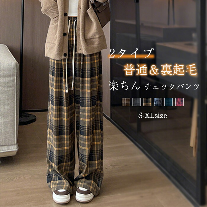 ワイドパンツ チェック パンツ レディース 裏起毛 春秋 チェックパンツ チェック柄 ゆったり 体型カバー 着瘦せ 美脚 通勤 可愛い カジュアル 暖かい お洒落 保温