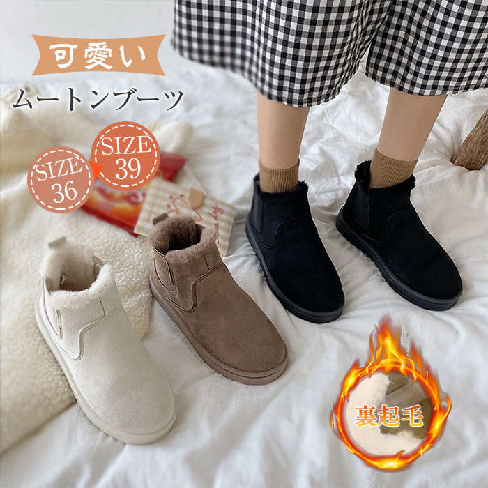 ムートンブーツ レディース 靴 ファーシューズ ショートブーツ 靴 裏ボア あったか カジュアル 通勤 防寒