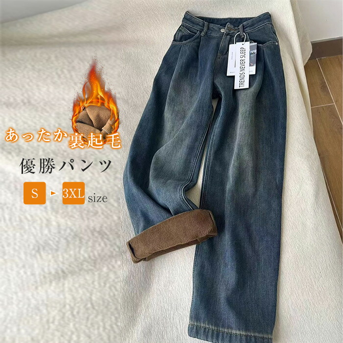 裏起毛 ワイドパンツ デニム パンツ レディース 裏ボア ロング デニムパンツ ボトムス ジーンズ ガウチョパンツ 体型カバー 秋冬 着痩せ 美脚 大きいサイズ
