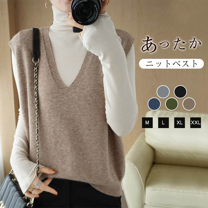 ニットベスト レディース ニット Vネック トップス ベスト ノースリーブ ショート丈 シンプル 無地 カジュアル レイヤード 春 秋 冬 重ね着